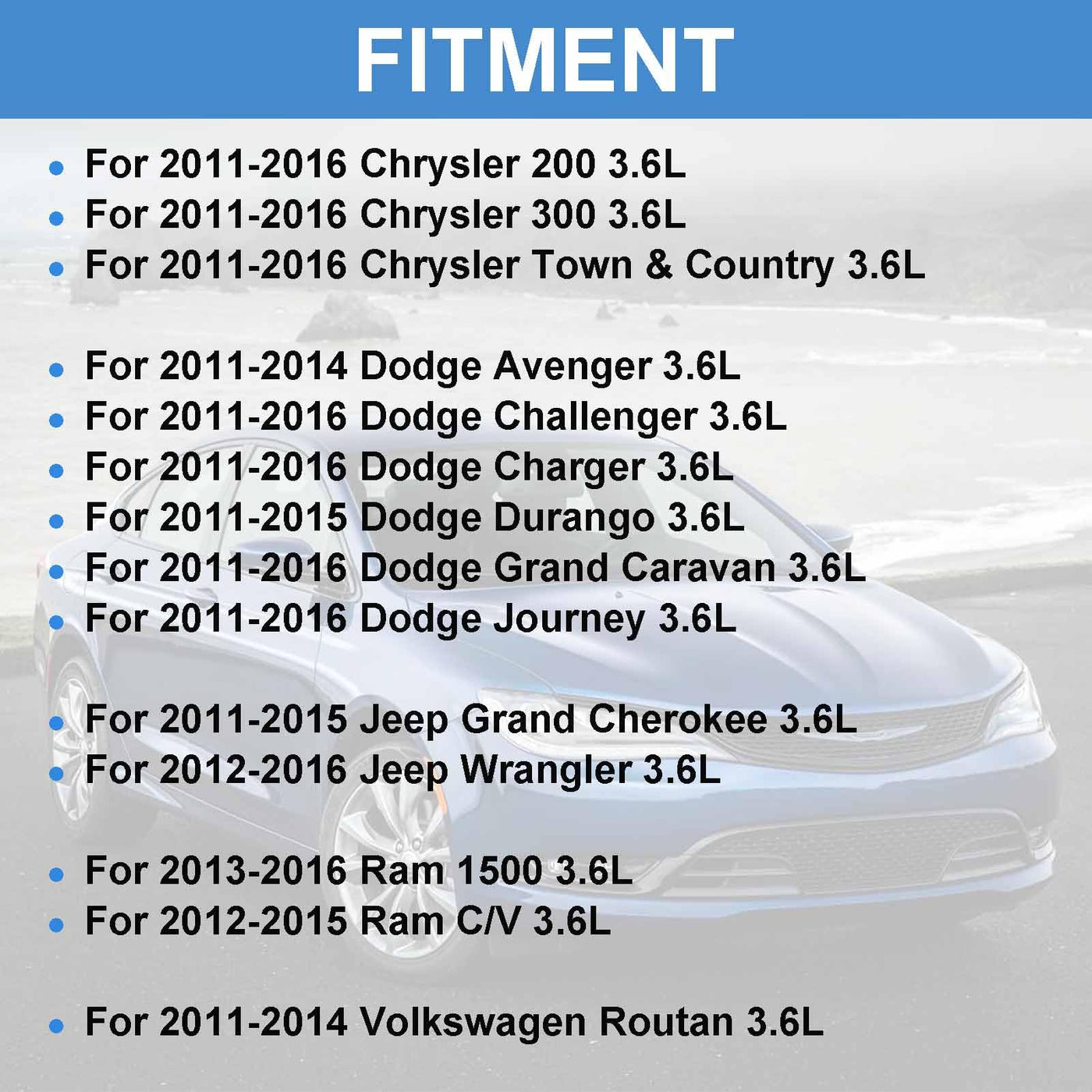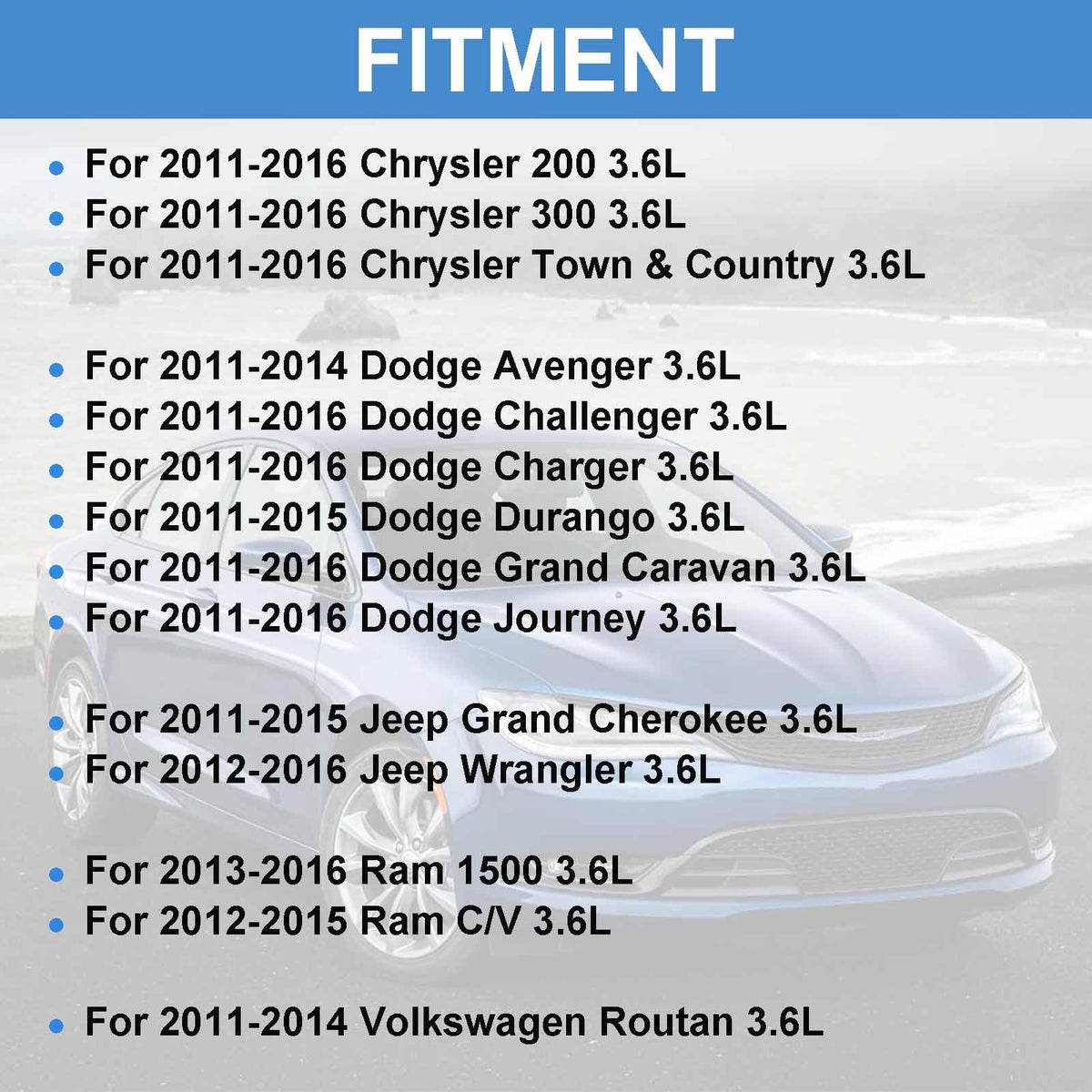 Q: What vehicles are compatible with the SUSUCAR 3.6 Pentastar Head Gasket Set?A: The SUSUCAR 3.6 Pentastar Head Gasket Set is compatible with various models including the 2011-2016 Chrysler 200, 300, and Town & Country, 2011-2014 Dodge Avenger, 2011-2016 Dodge Challenger, Charger, and Grand Caravan, as well as the 2011-2015 Jeep Grand Cherokee and 2012-2016 Wrangler, and several Ram models.
