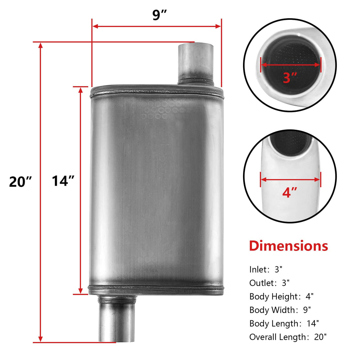 3 Inch Universal Exhaust Muffler,Straight-Through Performance Muffler Resonator With Stainless Steel Exhaust Tip For Cars, Truck