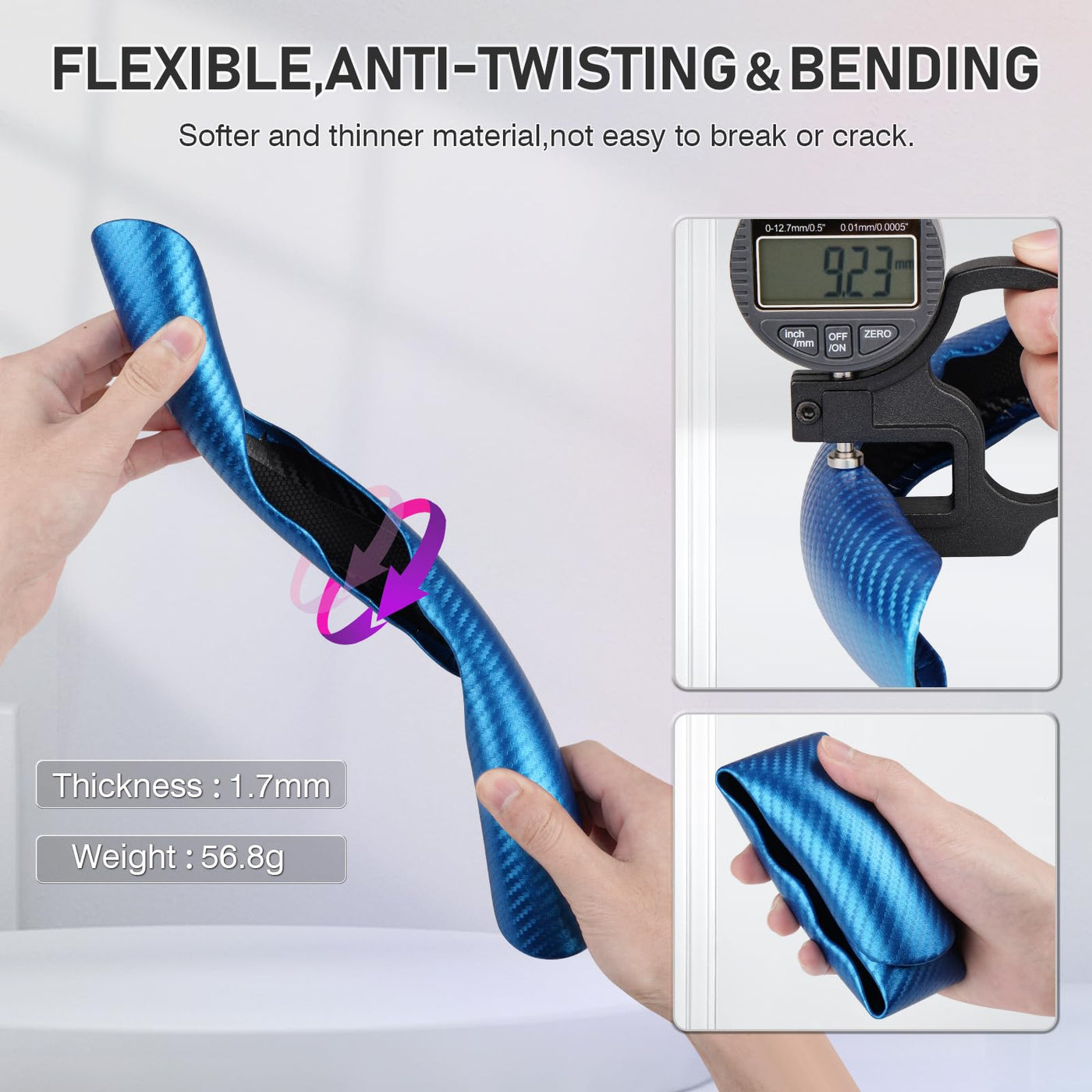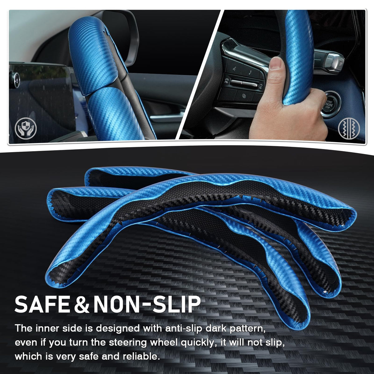 ?Comfortable Grip?Cartist steering wheel cover is made of high-quality carbon fiber material, which is comfortable, breathable, sweat-proof, and fits the curve of the human palm. No hot hands in summer and no ice hands in winter,allowing you to have an extremely comfortable grip and enjoy driving fun. | ?Safe & Non-Slip?The inner side of the carbon fiber steering wheel cover is designed with anti-slip dark pattern, which can be firmly fixed on the steering wheel, even if you turn the steering wheel quickly, it will not slip, ensuring the driving safety of you and your family. | ?15 Seconds Quick Installation?Unlike ordinary full-coverage steering wheel cover, it is very laborious and difficult to install. Our carbon fiber steering wheel cover features an innovative segmented design, non-stick, non-destructive installation in 15 seconds. It can be easily installed on the original steering wheel.Firm and not easy to fall off, even girls can install it easily. | ?Flexible & Durable?Our car steering wheel cover is made of lighter and softer carbon fiber material, with a thickness of only 1.7mm and a weight of only 56.8g. Cartist steering wheel cover is precisely fitted with the original steering wheel, handmade without stitches, durable and will not break or crack. | ?Universal Fit for 99% Car Steering Wheel?Cartist car steering wheel cover is an upgraded design with excellent adaptability and can be applied to 99% of the car models on the market, including various brands of Sedans,SUVs, MPVs,trucks,vans, RVs, etc.The durable and easy-to-install steering wheel cover is the premier option for covering an old or worn original factory steering wheel.
