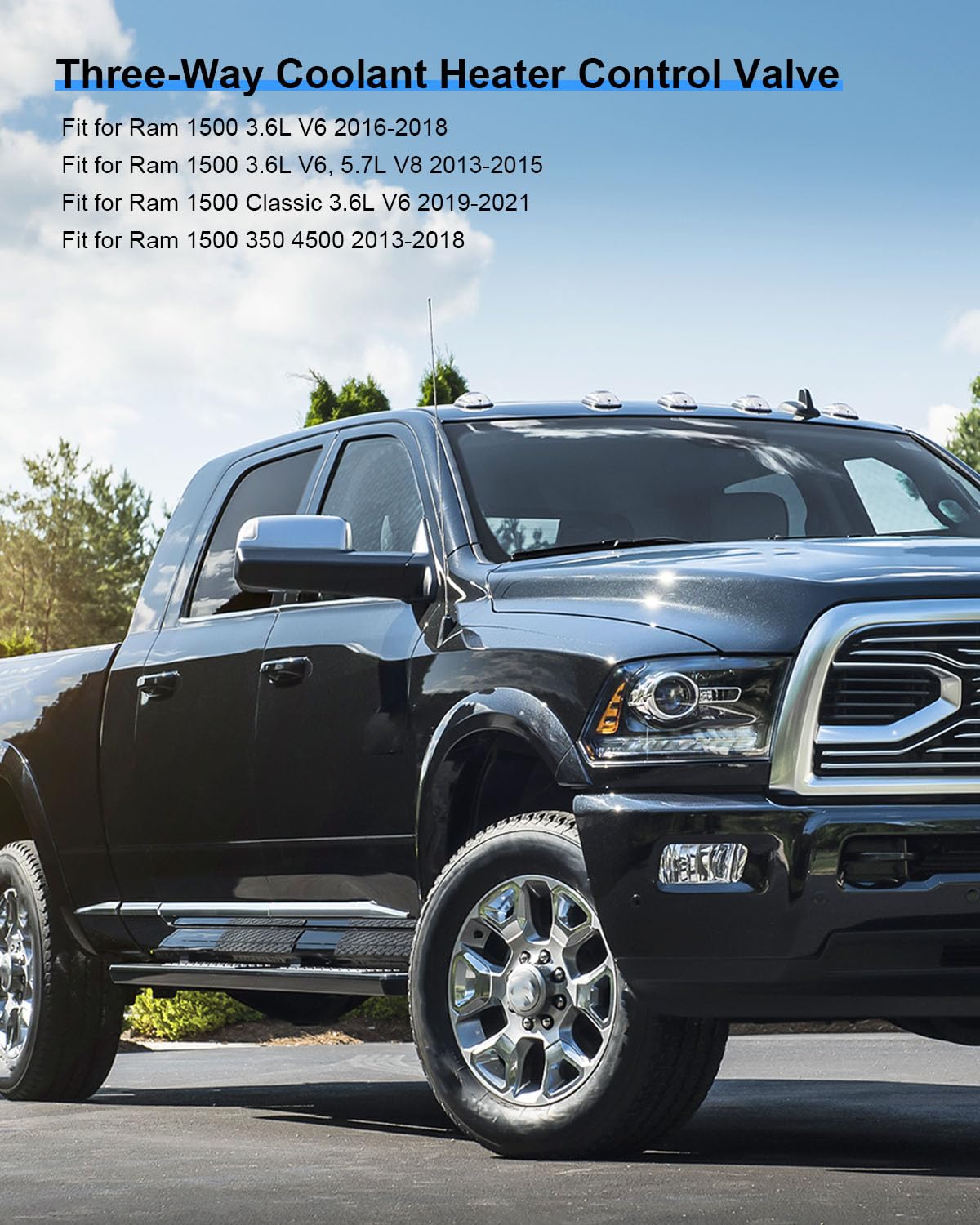 Fitment Fit for Dodge Ram 1500 2500 3500 4500 2013-2018 Fit for Ram 1500 3.6L V6 5.7L V8 2013-2015 Fit for Ram 1500 3.6L V6 2016-2018 Fit for Ram 1500 Classic 3.6L V6 2019-2021 Replacement Part Number Replace 52014892AC 52014892AB 52014892AA Product Specifications Status: 100% Brand New The Product Includes: 1 Three-Way Heater Control Valve Material: ABS Plastic Installation: Directly Replaced