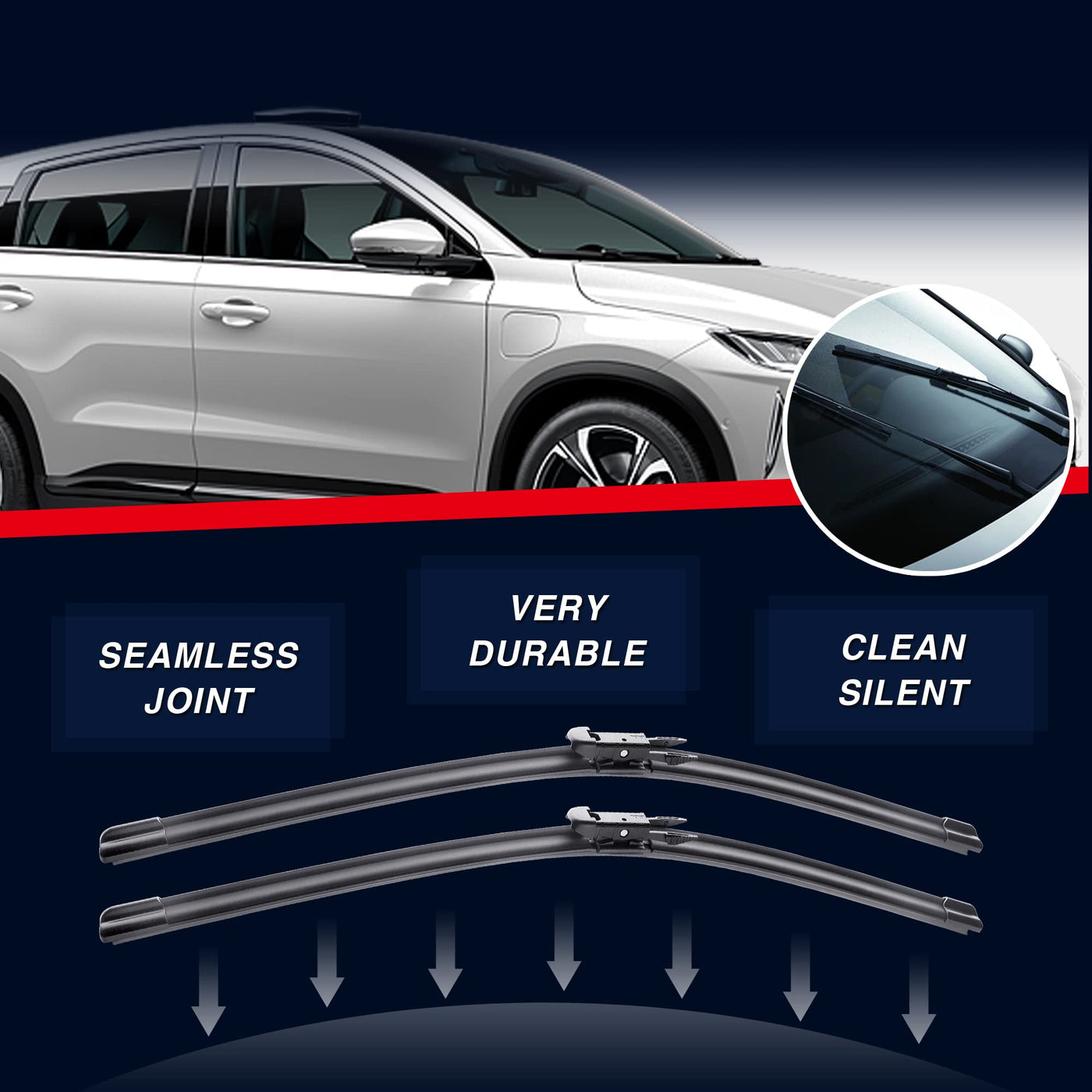 Q: Do these wiper blades offer good visibility in adverse weather conditions?A: Yes, these wiper blades are designed to provide a stronger grip on the windshield, reducing head-on wind resistance and effectively clearing water to enhance visibility during rain or snow.