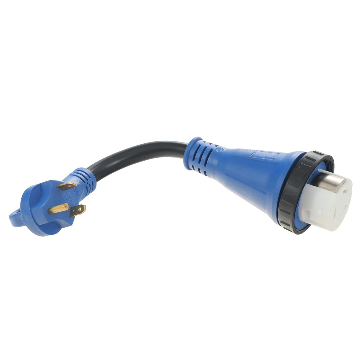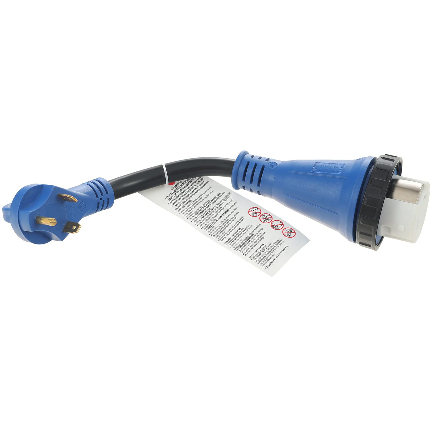 Q: What is the length of the adapter and how is it constructed?A: The adapter is 12 inches long and features a durable construction with flame retardant and heat-resistant PVC material, providing superior conductivity and reliability for your RV power needs.