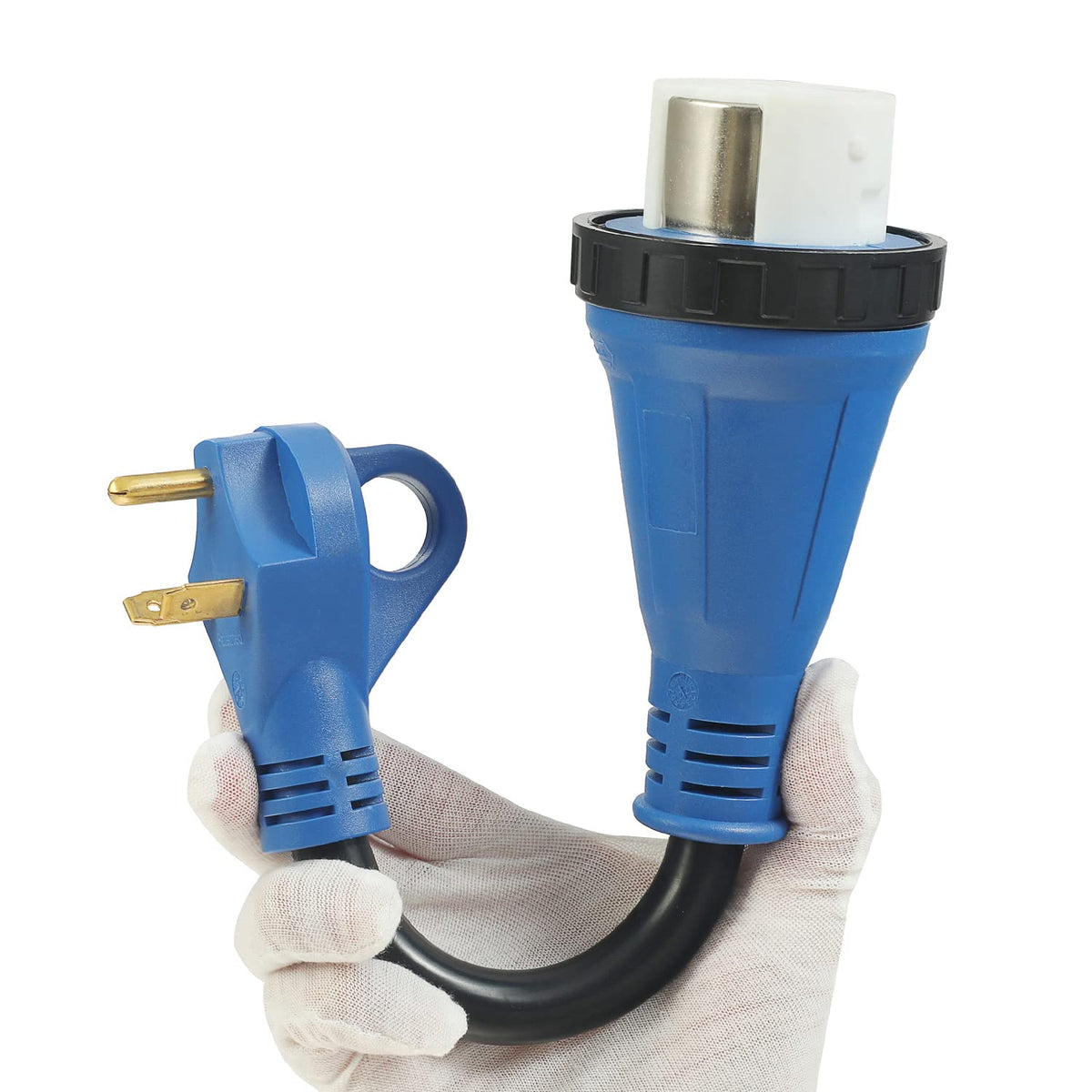 Q: Can I use this adapter for EV charging?A: No, this adapter is not suitable for EV charging. It is specifically designed for RVs, travel trailers, and other recreational vehicles that require a 50 amp electrical connection to a 30 amp power source.