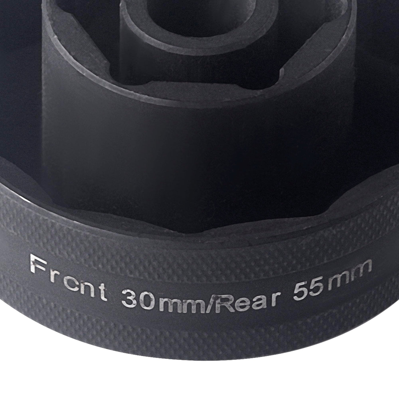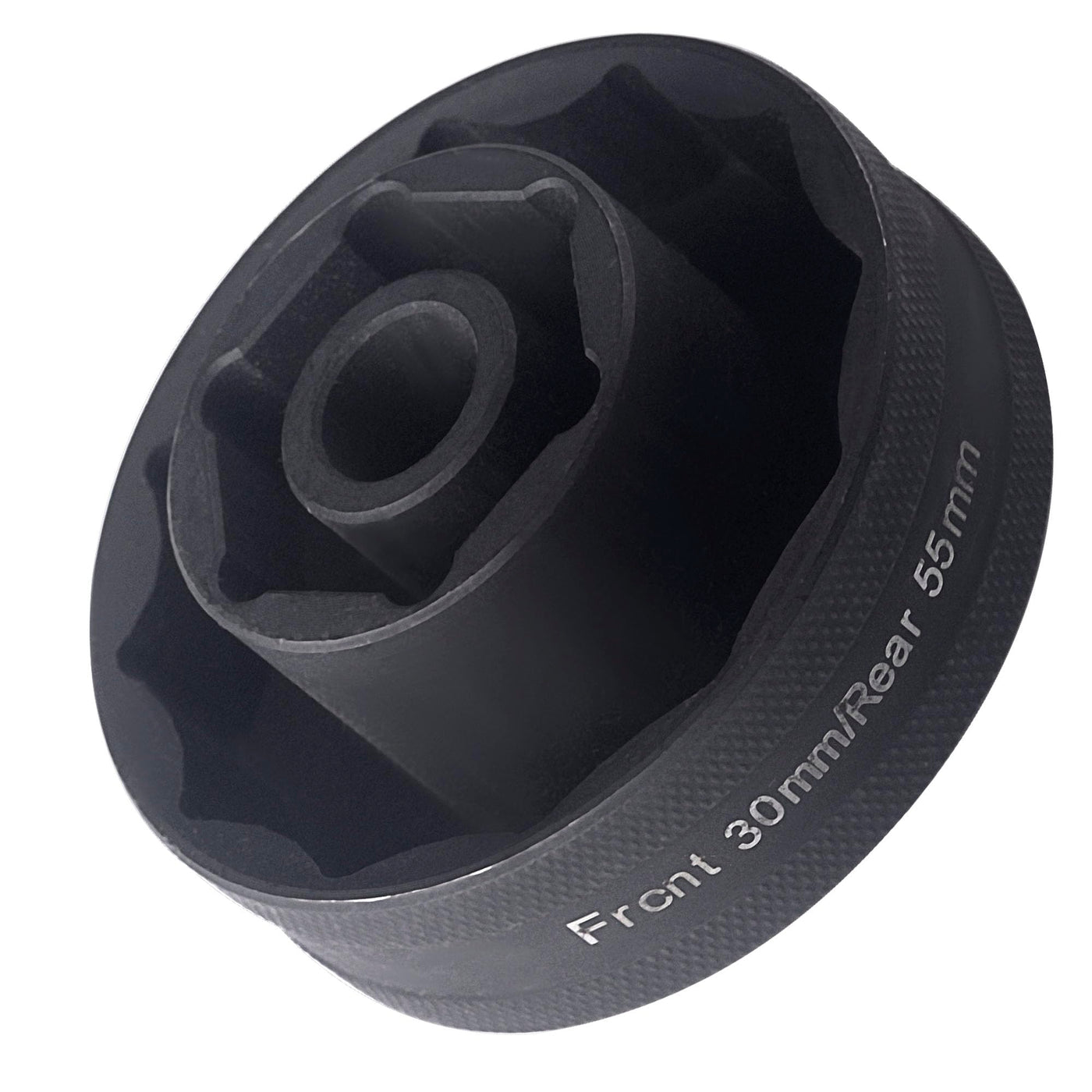 Q: Can this tool be used for both front and rear wheel axle nuts?A: Yes, this socket tool features a 30mm socket for the front axle nut and a 55mm socket for the rear wheel nut, making it a versatile tool for both applications.