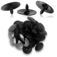 Q: What is the size and material of these insulation clips?A: These insulation clips are made from durable black nylon, ensuring longevity and reliability. The head diameter is 2 inches, stem diameter is 5/16 inches, stem length is 3/4 inches, overall length is 25/32 inches, and hole size is 1/4 inch.