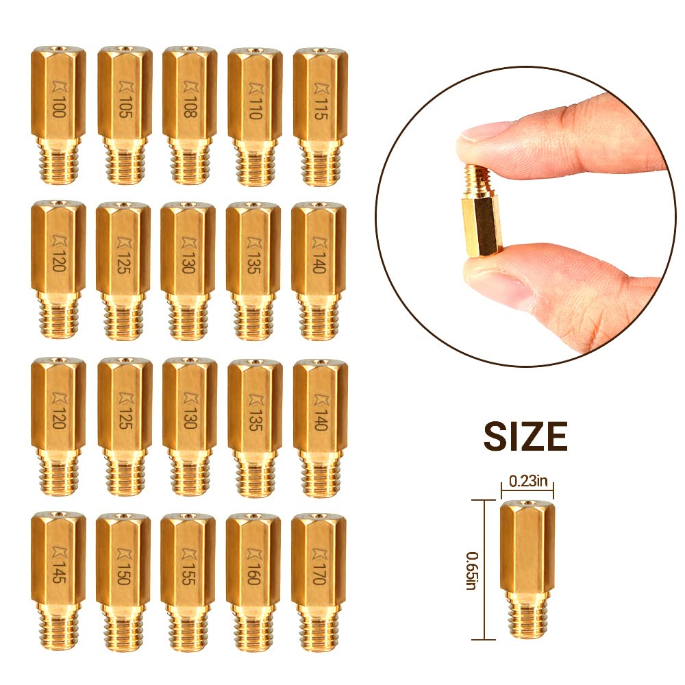 30 pcs Main Jets & 10Pcs Slow Jets Pilot Jet Kits fits for PWK Keihin OKO Carbs Fits for: Model A: Carburetor Slow Jet / Pilot Jet #32 #35 #38 #40 #42 #45 #48 #50 #52 #55. Model B: Carburetor Main Jet #100 #105 #108 #110 #115 #120 #125 #130 #135 #140. Model C: Carburetor Main Jet #120 #125 #130 #135 #140 #145 #150 #155 #160 #170 (PWK 28mm-42mm) Model D: Carburetor Main Jet #100 #105 #108 #110 #115 #120 #125 #130 #135 #140 (PWK 21mm-34mm) Replaces part number: SCL-2018090002-ZH-T-01 SCL-2018090002-ZH-T-02 SCL-2018090001-ZH-T-01 SCL-2018090003-ZH-T-01 Size: Slow Pilot Jet Size: thread Size: 6mmx0.75mm, Nut diameter: 5mm/0.19'', Length: 28mm/1.1''. #100 - #140 Main jet Size: Thread pitch: 4.7 x 2.5 mm; Nut diameter: 5.7 mm. #155 - #178 Main jet Size: Pitch 5mm 0.8, the amount of the total length of the hole 16.5mm, which cap the length of 11.5mm, thread length 5mm, nut diameter 6mm. Customer service: Never worry about any problem during the service, contact us without hesitation and you will be replied within 24 hours. Package Include: 40Pcs( 4 set in total, 10pcs in each set)