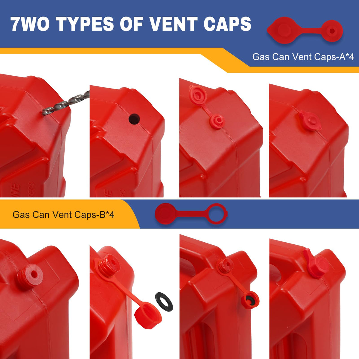 33 Pcs Gas Can Nozzle Replacement,Gas Can Spouts Fits 5 Gallon Gasoline Cans, with Flexible Nozzles, Screw Collar Caps, Thicker Gasket, Spout Cap, Drill Bit and Fuel Vent Caps - for Smooth Flow(Red)