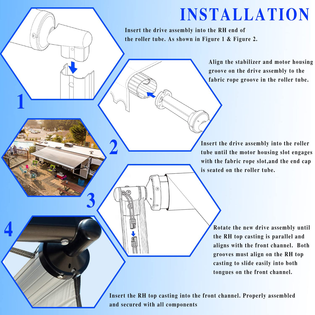 Rh Torsion Assembly Use With 9100 Series Awning Systems, Compatible With 910, 915, 916, 917 Models. Replace For 3310423.137U & 3310419.209U. Power Source: 12V Dc