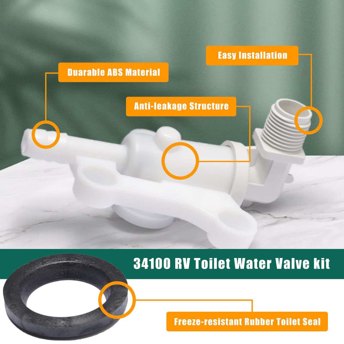 34100 Toilet Water Assembly Valve Kit Compatible with Thetford Aqua-Magic RV Camper Toilets Style Lite and Style Plus Parts