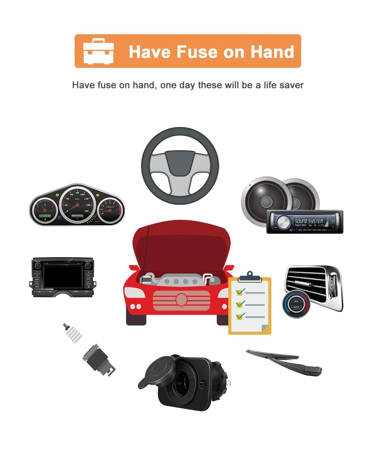 Q: How do I safely replace a blown fuse using this kit?A: To replace a blown fuse, ensure your vehicle's ignition is turned off. Use the included fuse puller to carefully remove the broken fuse, and replace it with a new one from the kit. Make sure to select the correct amperage rating for your vehicle.
