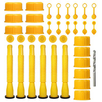 37 Pcs Gas Can Spout Replacement Set, Gas Can Nozzle 5 Gal ,6 Bendable Tubes,6 Screw Collar Coarse Thread &6Fine Thread-Fits Most Of The Cans,6 Threaded Caps ,6 Vent Caps 1 Drill Lid (37)