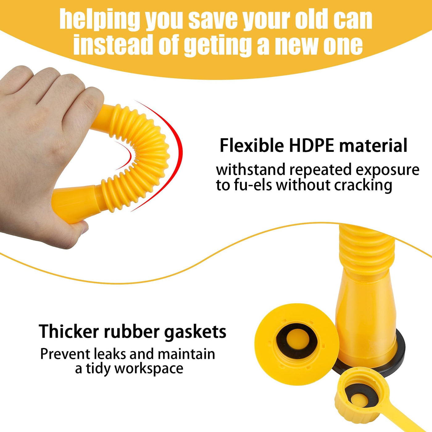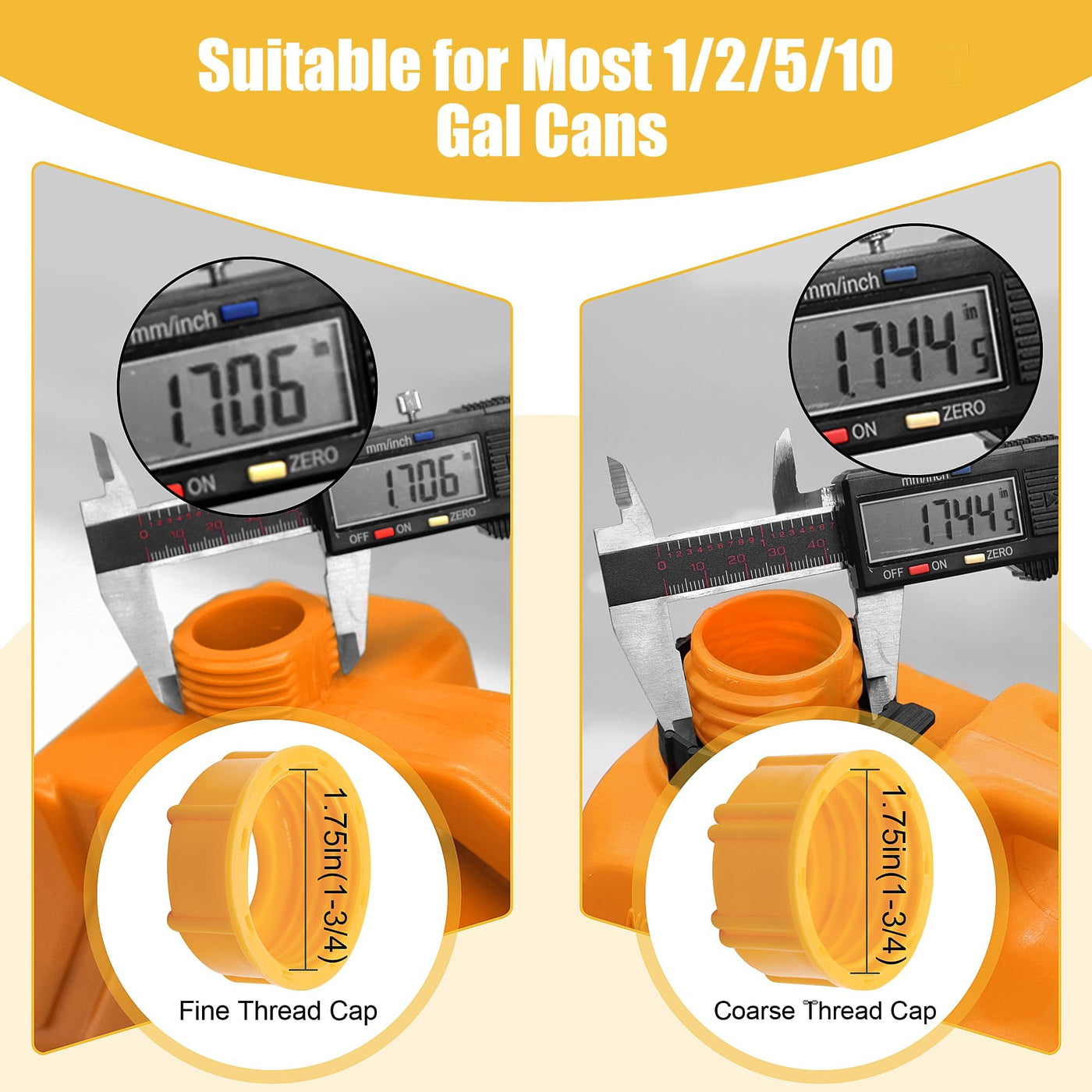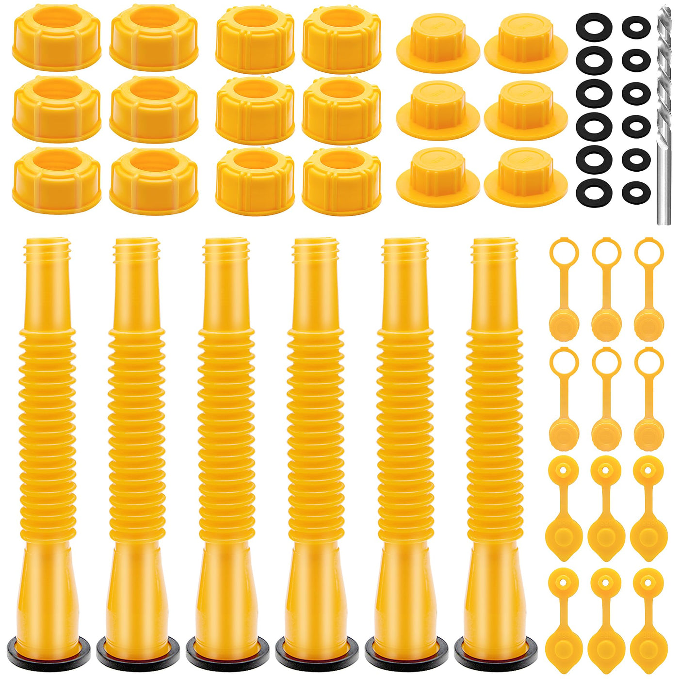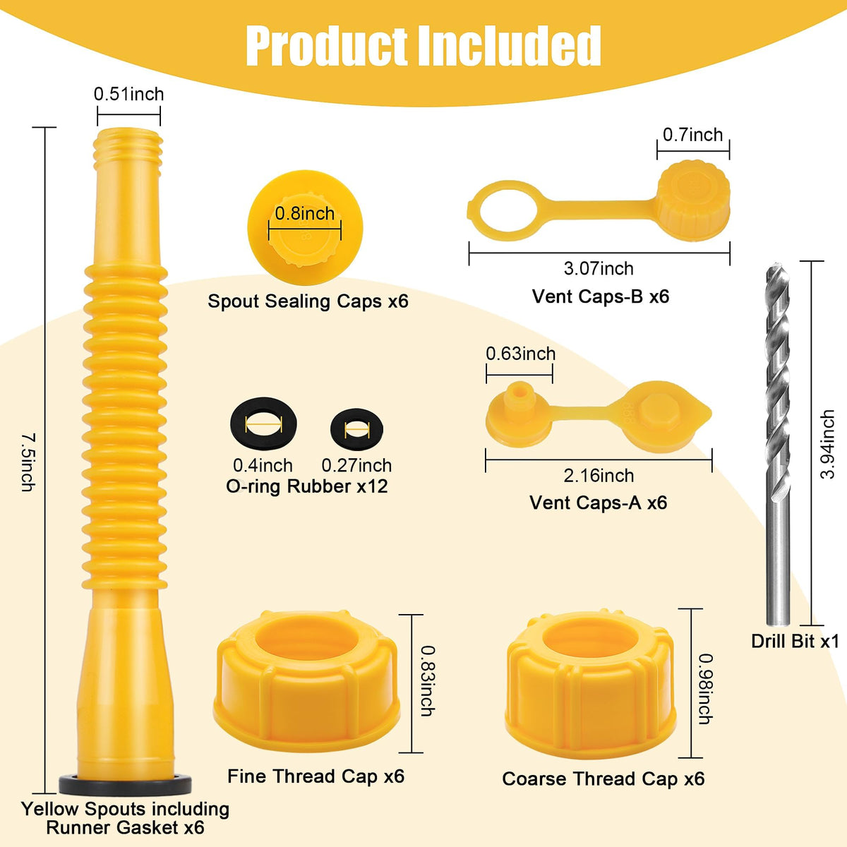 37 pcs Gas can spout replacement set ,Suitable for most 1/2/5/10 gal gas cans,12 * screw collar caps are all 1.75inch, 6 of them are coarse threads and the other 6 are fine threads. Please check your gas can outside thread diameter before you make this purchase Gas Can Spout Replacement kit,Suitable for most 1/2/5/10 gallon oil cans. High-quality materials, These gas can nozzle replacement parts are made of high-quality plastic materials,In use, you can bend freely without breaking.Thicker and widened rubber gaskets,Can better fit the bottle cap,Prevent liquid leakage when refueling. Anti-overflow design,(Special Attention: As shown in the figure, the screw cap of the gas can spout cap is hexagonal)The spout tube and the spout cap are threaded, and the spout cap has a rubber sealing ring inside. Tighten the spout cap after use. There will be no oil overflow even in the case of transportation or the tank is down.