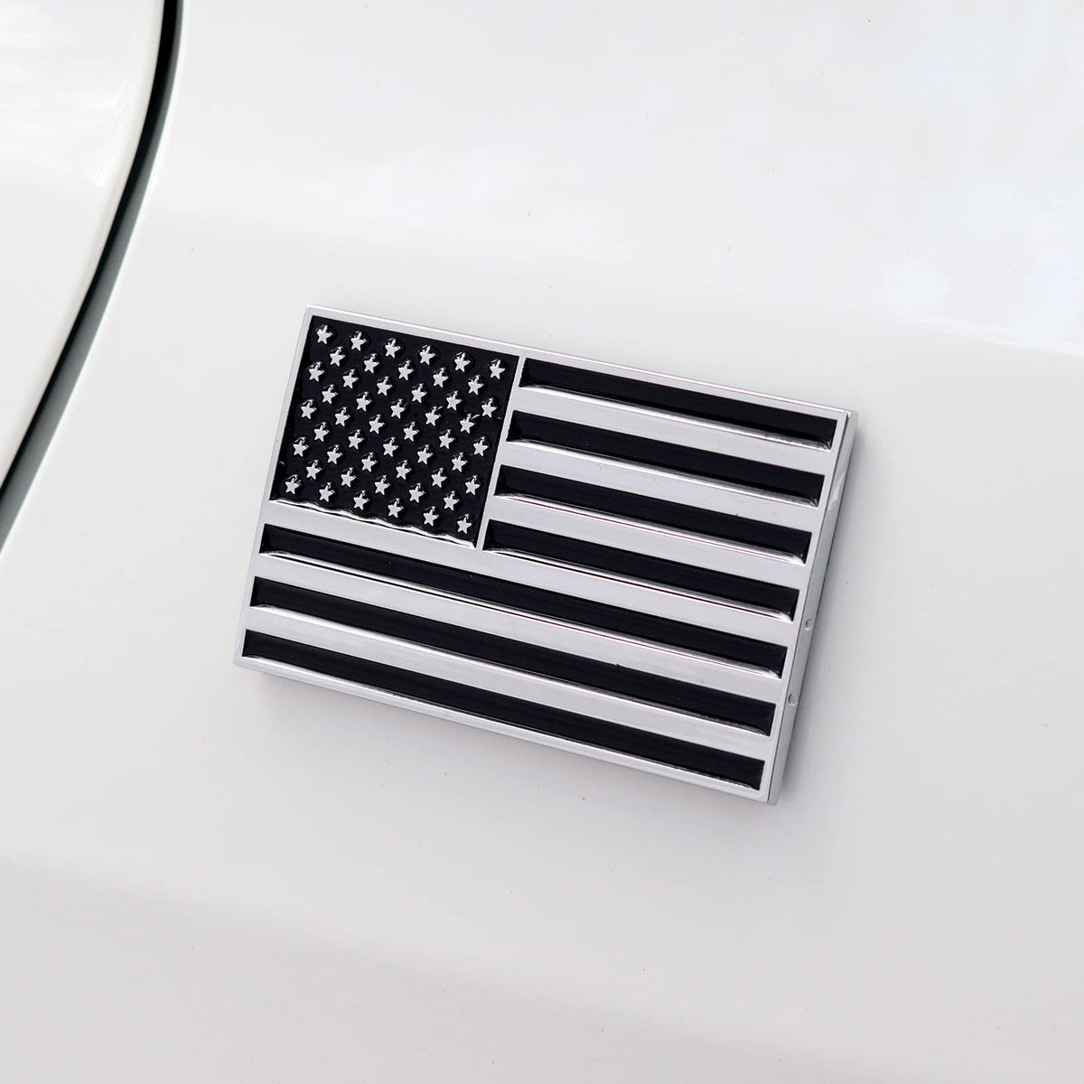 3D Black American Flag Metal Car Sticker, 3.15'' X 2'' Usa Flag Decal, Zinc Alloy Emblem For Truck, Car, Motocycle, Boat (Black)