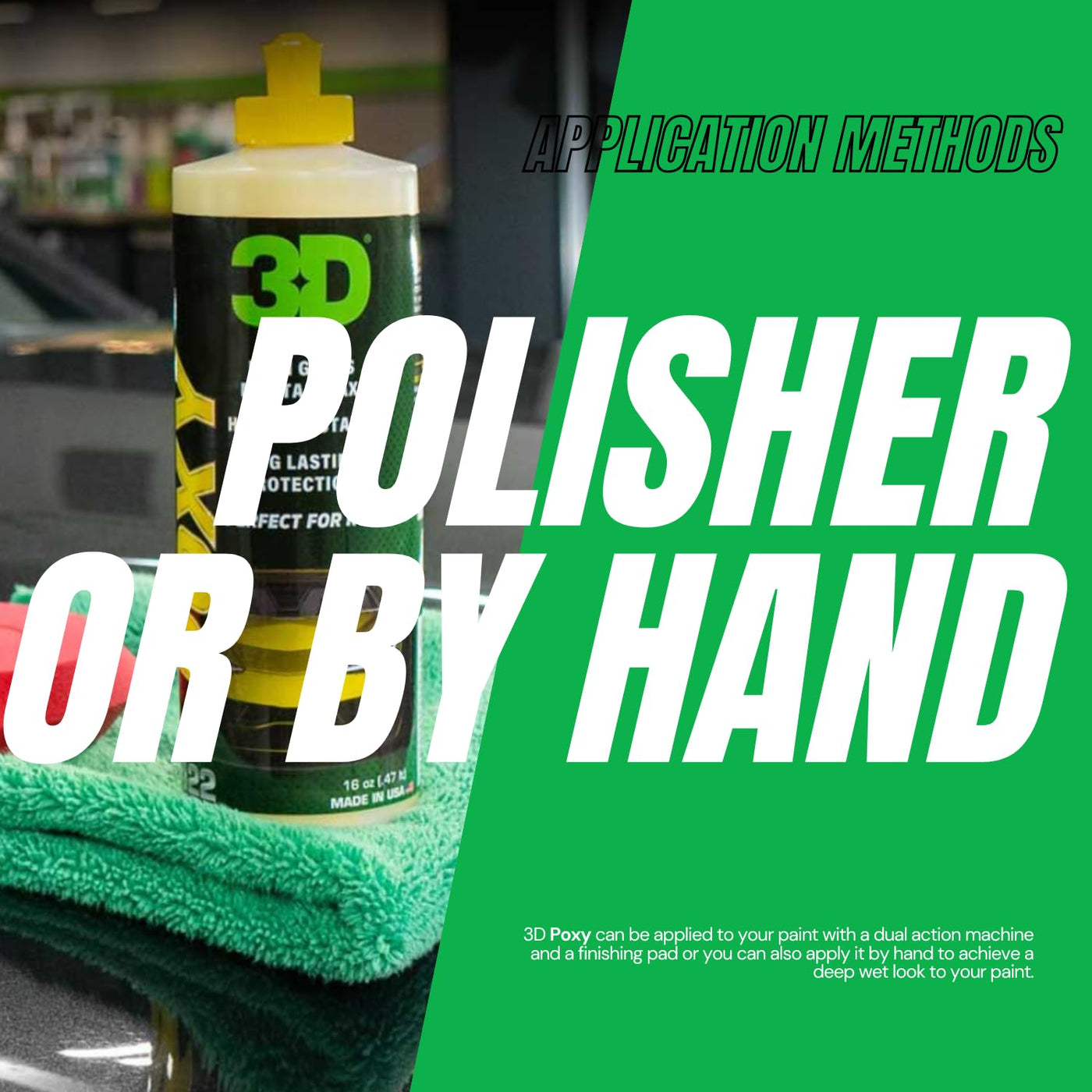 This isn’t your regular auto wax polish. While most products use carnauba wax, 3D Poxy is based on Montan. A wax that provides high Gloss, higher heat resistance, and impressively long lasting protection.