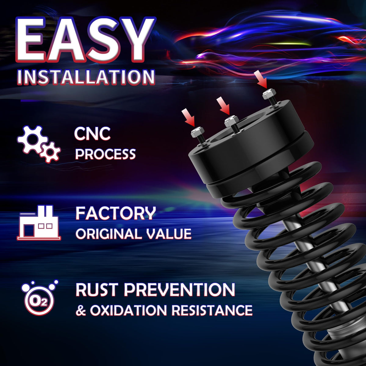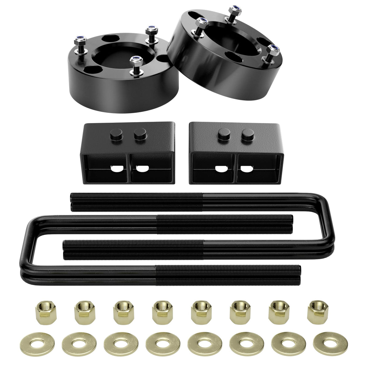3''F + 3''R Leveling Lift Kit For 2004-2020 F150, 3'' Front Strut Spacers And 3'' Rear Black Leveling Lift Block Kit Extended Sq