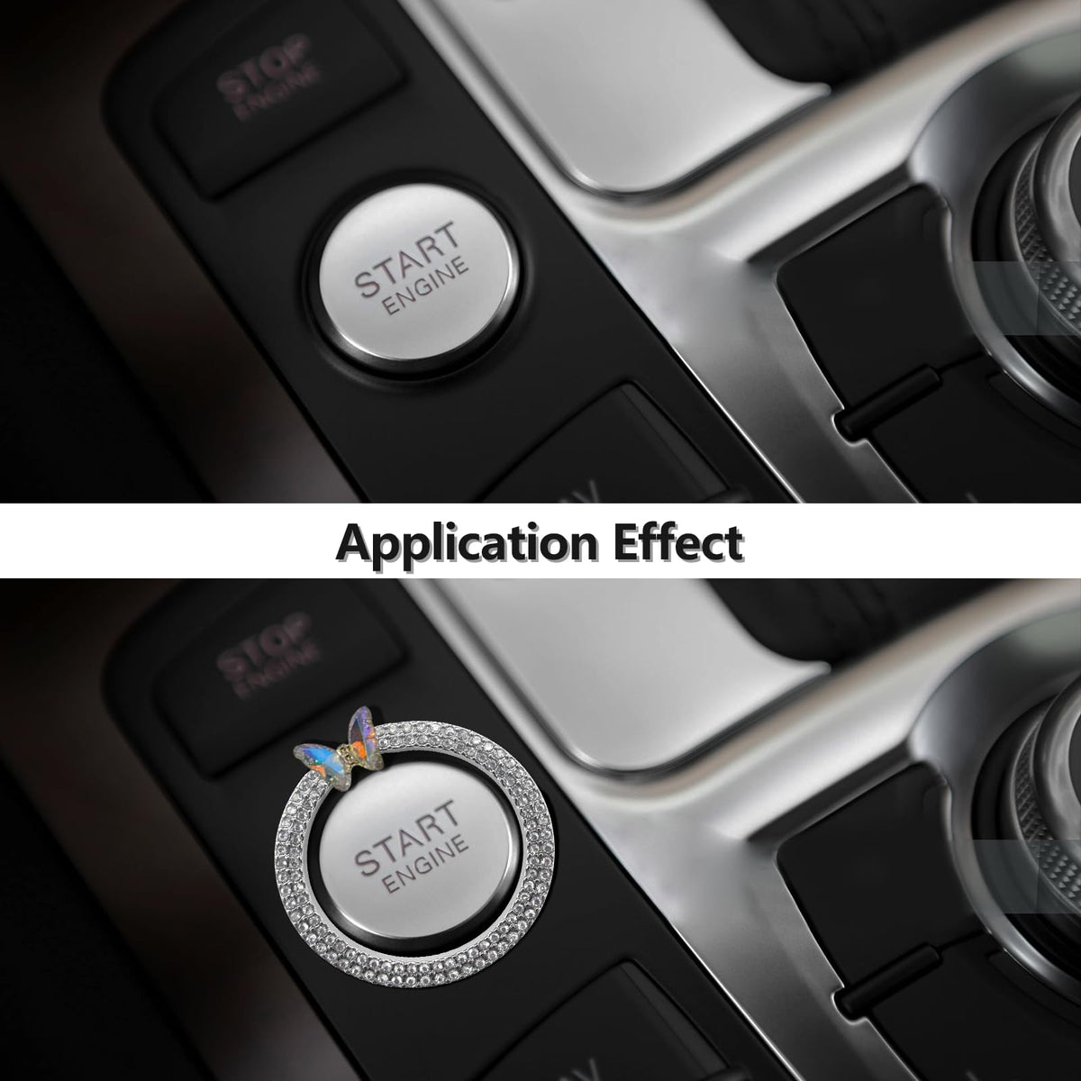 3leavtrees Bling Ring Emblem Car Accessories - Rhinestone Crystal Ring for Car Buttons & Knobs, Push to Start Button, Key Igniti