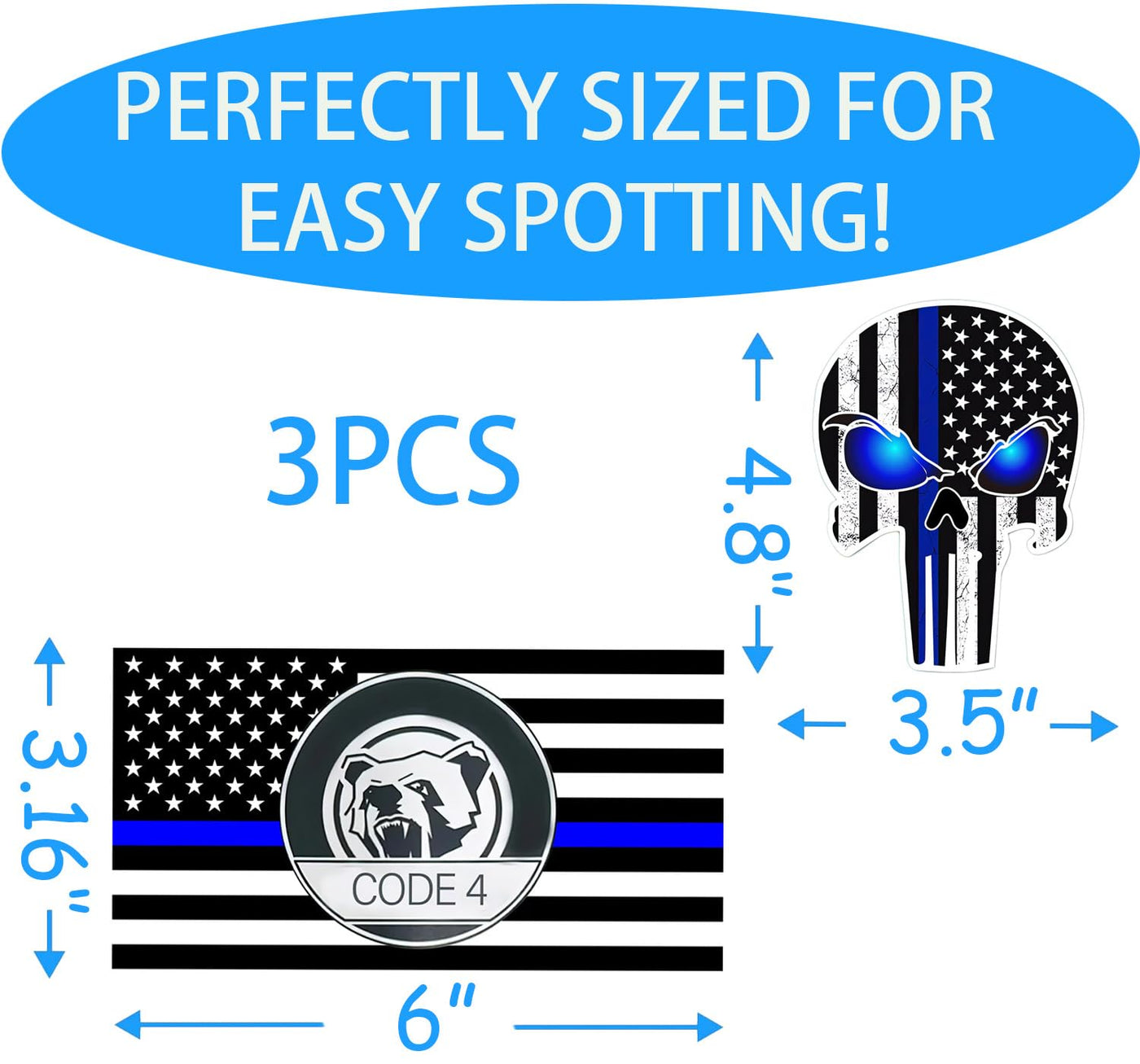 3PCS Thin Blue line Sticker Code 4, Thin Blue Line Skull Decal, Police Support Stickers, American Flag Thin Blue Line Decal, for