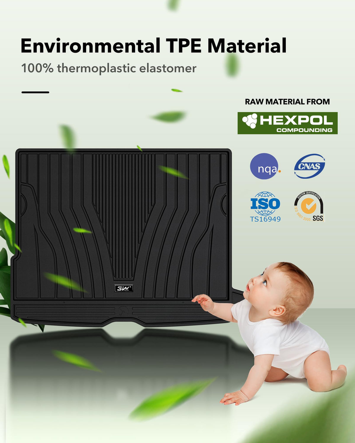 3W Auto Accessory Inc: 3W stands for Wonderful, Worldwide, Worthy. We are a company manufacturing floor liners/trunk mat with 25 years of history. We are one of the first companies in this filed to use TPE and injection molding to manufacture floor liners. The traditional floor liners are made by compression molding, which does not allow for many details, causing the floor liners/cargo liner to be rigid and stiff. 3W floor liners/cargo mat are designed with different patterns fitting the style of different models of cars. TPE material: 3W car mats are made from Thermoplastic Elastomers, which shows advantages of both rubbery materials and plastic materials thus having more strength, resilience, durability and elasticity. It has more outstanding thermal properties and material stability when exposed to an extreme temperature. 3W trunk mat has no odor even in extremely hot weather with all car windows closed, and can stay resilient in extremely cold weather. Some babys pacifiers are made from the same material. This design won the 2017 Red Dot award in Germany. Custom fit and easy to clean: Each 3W cargo liner is custom fit. We scan the interior of each car and computer design the pattern incorporating key elements of the vehicle, gives the trunk mat a customized look and feel, will match the interior of your car perfectly. The back of 3W floor liners are designed with air pockets to effectively absorb the noise from the chassis. In addition, every car liner has a raised containment walls protecting your vehicle from all kinds of mess. You can finish cleaning up the cargo liners within few minutes.