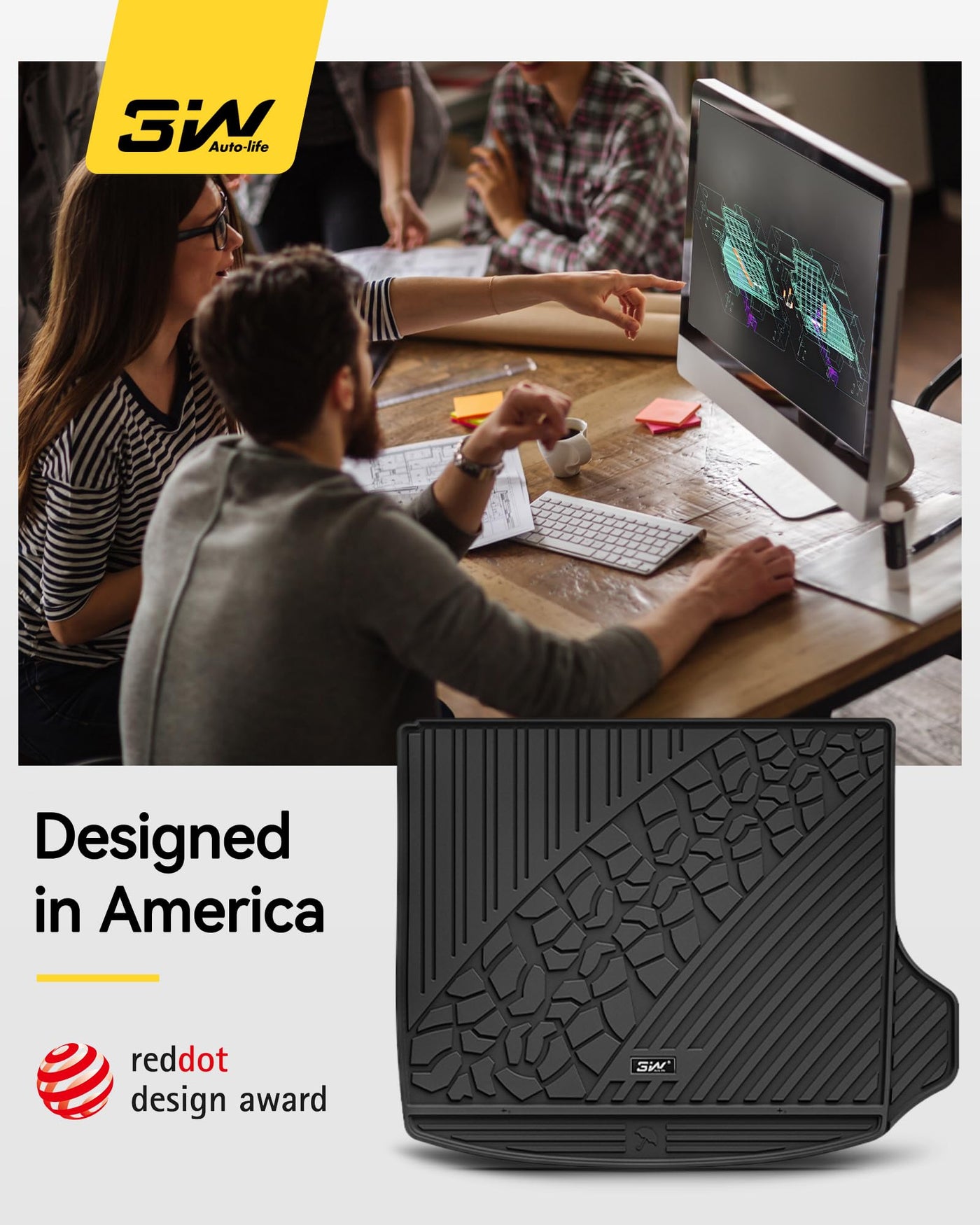 3W Auto Accessory Inc: 3W stands for Wonderful, Worldwide, Worthy. We are a company manufacturing floor liners/trunk mat with 25 years of history. We are one of the first companies in this filed to use TPE and injection molding to manufacture floor liners. The traditional floor liners are made by compression molding, which does not allow for many details, causing the floor liners/cargo liner to be rigid and stiff. 3W floor liners/cargo mat are designed with different patterns fitting the style of different models of cars. TPE material: 3W car mats are made from Thermoplastic Elastomers, which shows advantages of both rubbery materials and plastic materials thus having more strength, resilience, durability and elasticity. It has more outstanding thermal properties and material stability when exposed to an extreme temperature. 3W trunk mat has no odor even in extremely hot weather with all car windows closed, and can stay resilient in extremely cold weather. Some babys pacifiers are made from the same material. This design won the 2017 Red Dot award in Germany. Custom fit and easy to clean: Each 3W cargo liner is custom fit. We scan the interior of each car and computer design the pattern incorporating key elements of the vehicle, gives the trunk mat a customized look and feel, will match the interior of your car perfectly. The back of 53W floor liners are designed with air pockets to effectively absorb the noise from the chassis. In addition, every car liner has a raised containment walls protecting your vehicle from all kinds of mess. You can finish cleaning up the cargo liners within few minutes.