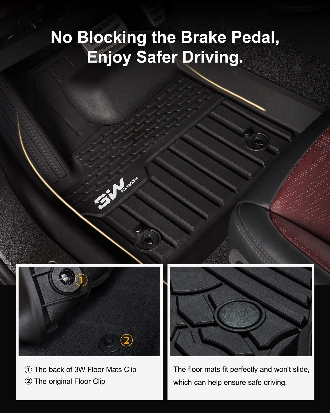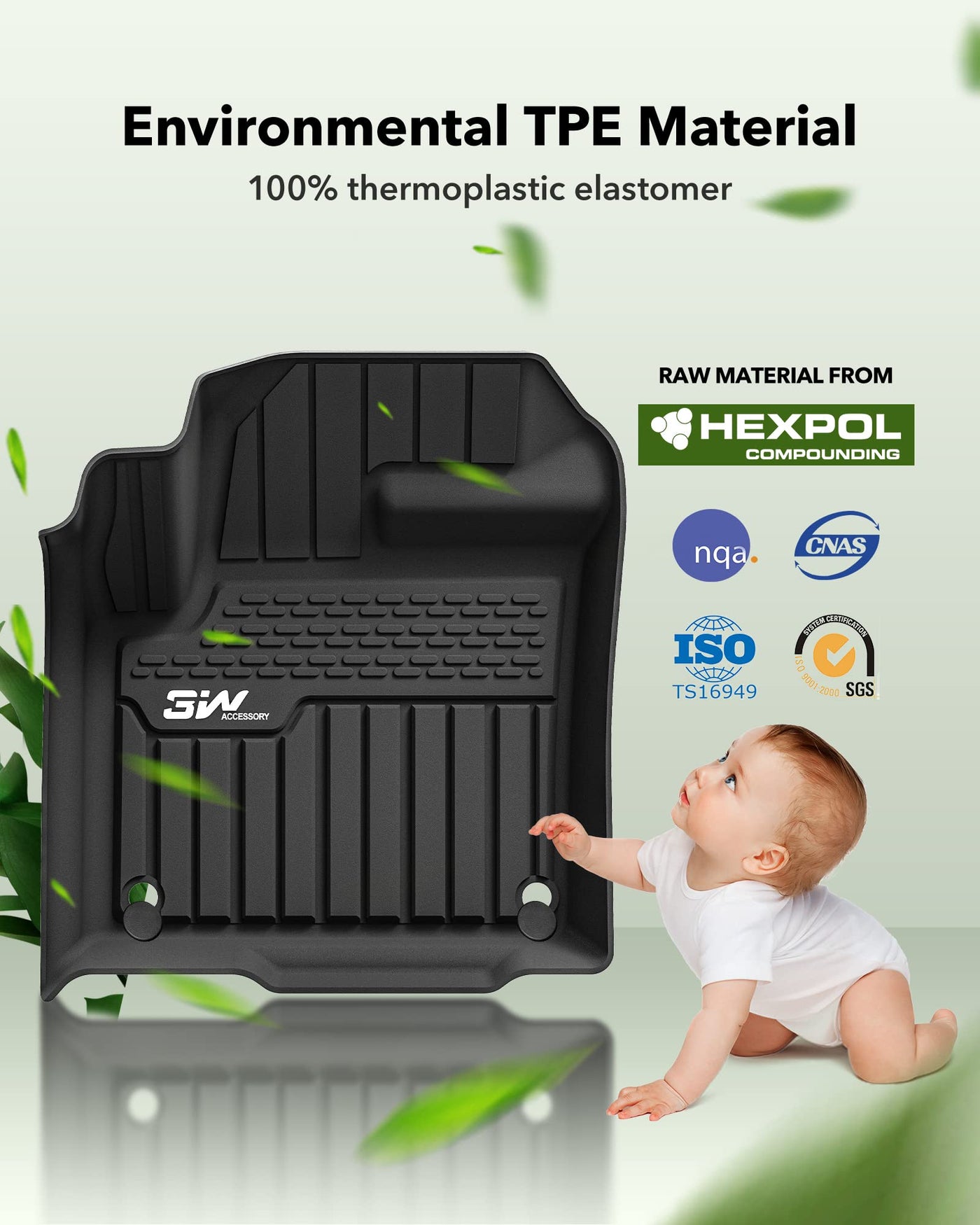 3W Auto Accessory Inc: 3W stands for Wonderful, Worldwide, Worthy. We are a company manufacturing floor liners/trunk mat with 25 years of history. We are one of the first companies in this filed to use TPE and injection molding to manufacture floor liners. The traditional floor liners are made by compression molding, which does not allow for many details, causing the floor liners/cargo liner to be rigid and stiff. 3W floor liners/cargo mat are designed with different patterns fitting the style of different models of cars. TPE material: 3W car mats are made from Thermoplastic Elastomers, which shows advantages of both rubbery materials and plastic materials thus having more strength, resilience, durability and elasticity. It has more outstanding thermal properties and material stability when exposed to an extreme temperature. 3W trunk mat has no odor even in extremely hot weather with all car windows closed, and can stay resilient in extremely cold weather. Some babys pacifiers are made from the same material. This design won the 2017 Red Dot award in Germany. Custom fit and easy to clean: Each 3W cargo liner is custom fit. We scan the interior of each car and computer design the pattern incorporating key elements of the vehicle, gives the trunk mat a customized look and feel, will match the interior of your car perfectly. The back of 10W floor liners are designed with air pockets to effectively absorb the noise from the chassis. In addition, every car liner has a raised containment walls protecting your vehicle from all kinds of mess. You can finish cleaning up the cargo liners within few minutes.