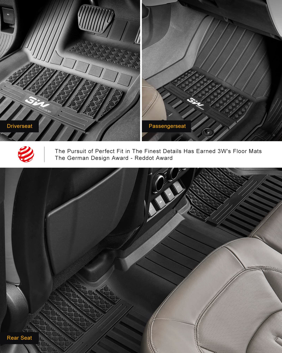 3W Auto Accessory Inc: 3W stands for Wonderful, Worldwide, Worthy. We are a company manufacturing floor liners/trunk mat with 25 years of history. We are one of the first companies in this filed to use TPE and injection molding to manufacture floor liners. The traditional floor liners are made by compression molding, which does not allow for many details, causing the floor liners/cargo liner to be rigid and stiff. 3W floor liners/cargo mat are designed with different patterns fitting the style of different models of cars. TPE material: 3W car mats are made from Thermoplastic Elastomers, which shows advantages of both rubbery materials and plastic materials thus having more strength, resilience, durability and elasticity. It has more outstanding thermal properties and material stability when exposed to an extreme temperature. 3W trunk mat has no odor even in extremely hot weather with all car windows closed, and can stay resilient in extremely cold weather. Some babys pacifiers are made from the same material. This design won the 2017 Red Dot award in Germany. Custom fit and easy to clean: Each 3W cargo liner is custom fit. We scan the interior of each car and computer design the pattern incorporating key elements of the vehicle, gives the trunk mat a customized look and feel, will match the interior of your car perfectly. The back of 38W floor liners are designed with air pockets to effectively absorb the noise from the chassis. In addition, every car liner has a raised containment walls protecting your vehicle from all kinds of mess. You can finish cleaning up the cargo liners within few minutes.