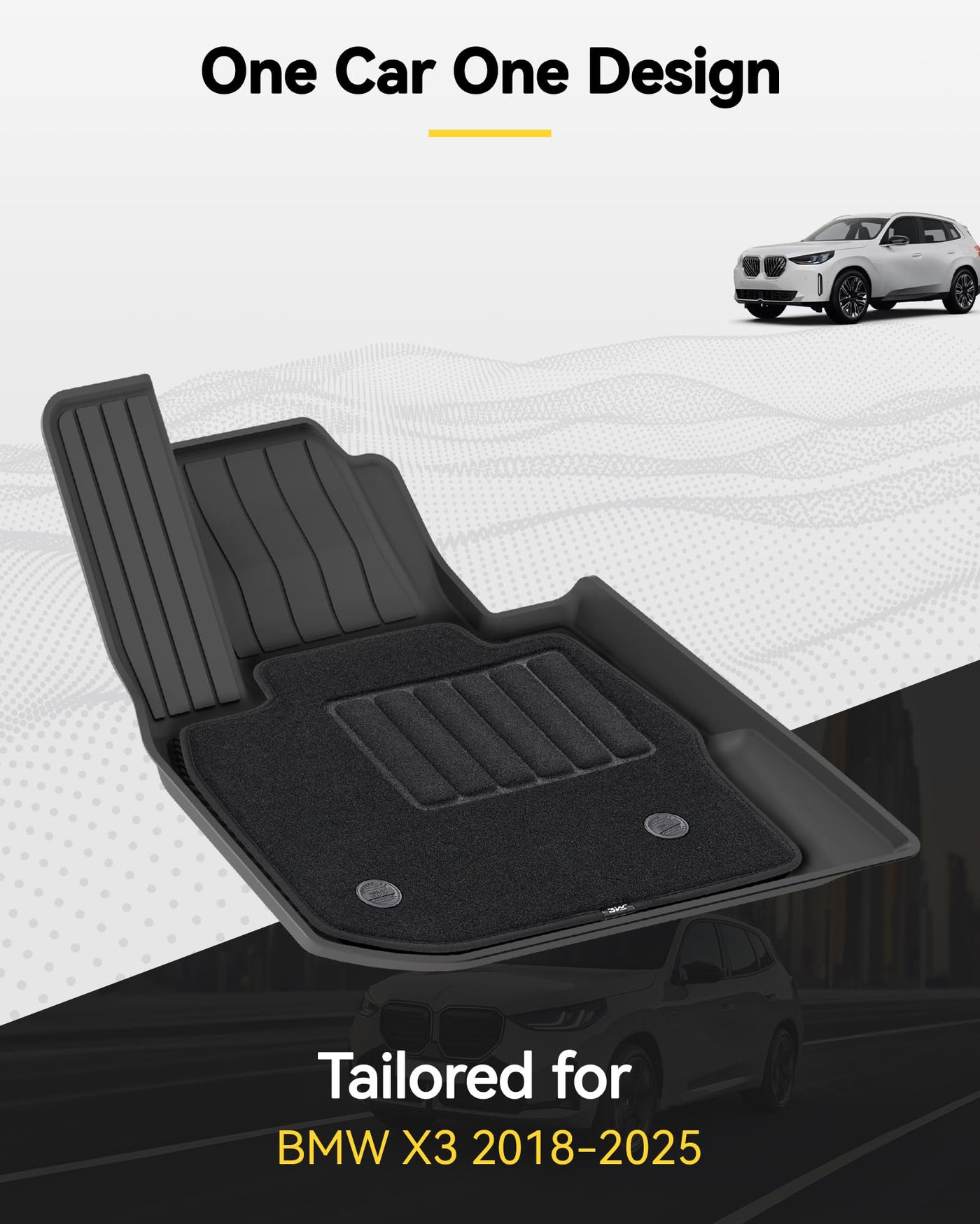 3W Floor Mats & Carpet (1St And 2Nd Rows) Fit For Bmw X3 2018-2025 Tpe All-Weather Harmless Heavy Duty Floor Liner Accessories