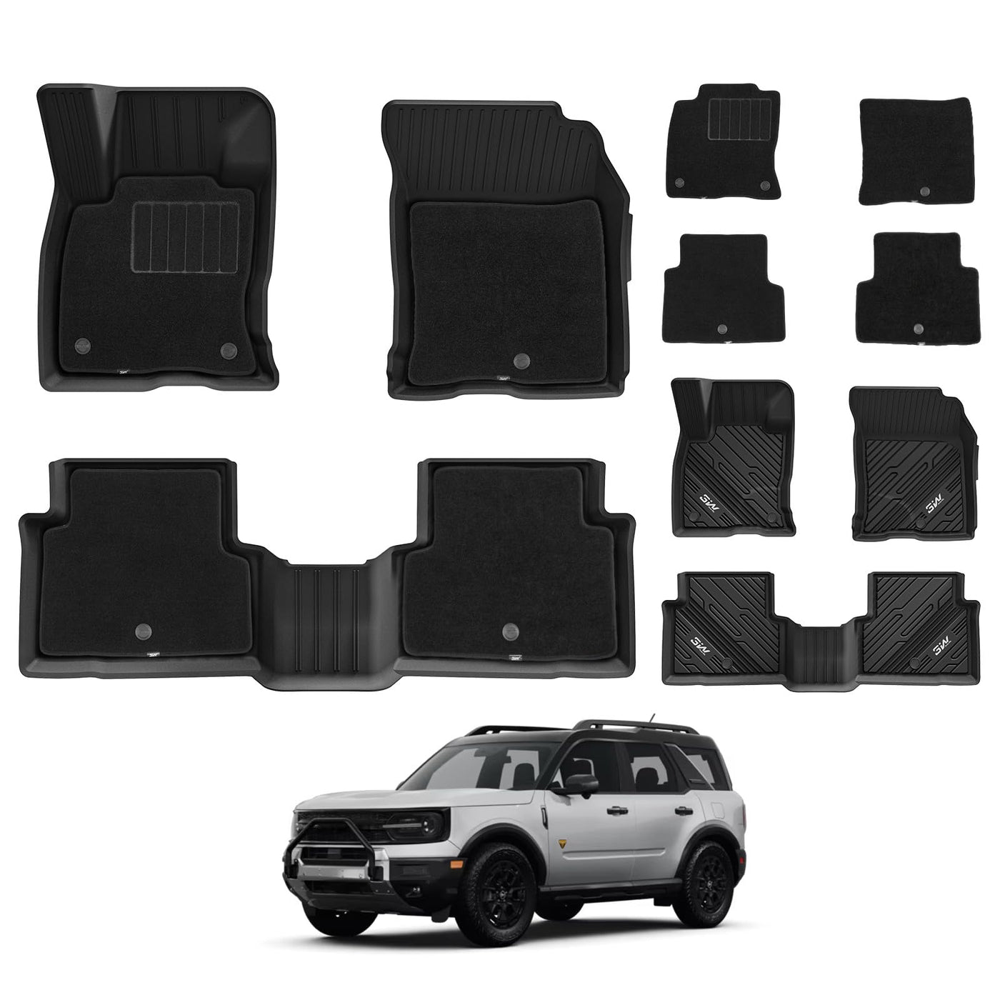 3W Floor Mats & Carpets (1st and 2nd Rows) Fit for Ford Bronco Sport 2021-2024 All Weather TPE Car Accessories Custom Fit Full S