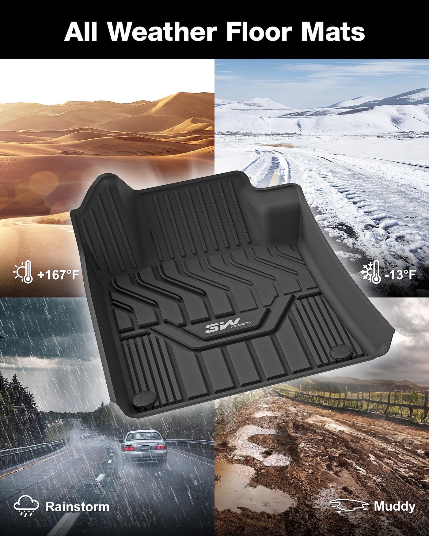 3W Auto Accessory Inc: 3W stands for Wonderful, Worldwide, Worthy. We are a company manufacturing floor liners/trunk mat with 25 years of history. We are one of the first companies in this filed to use TPE and injection molding to manufacture floor liners. The traditional floor liners are made by compression molding, which does not allow for many details, causing the floor liners/cargo liner to be rigid and stiff. 3W floor liners/cargo mat are designed with different patterns fitting the style of different models of cars. TPE material: 3W car mats are made from Thermoplastic Elastomers, which shows advantages of both rubbery materials and plastic materials thus having more strength, resilience, durability and elasticity. It has more outstanding thermal properties and material stability when exposed to an extreme temperature. 3W trunk mat has no odor even in extremely hot weather with all car windows closed, and can stay resilient in extremely cold weather. Some babys pacifiers are made from the same material. This design won the 2017 Red Dot award in Germany. Custom fit and easy to clean: Each 3W cargo liner is custom fit. We scan the interior of each car and computer design the pattern incorporating key elements of the vehicle, gives the trunk mat a customized look and feel, will match the interior of your car perfectly. The back of 571W floor liners are designed with air pockets to effectively absorb the noise from the chassis. In addition, every car liner has a raised containment walls protecting your vehicle from all kinds of mess. You can finish cleaning up the cargo liners within few minutes.