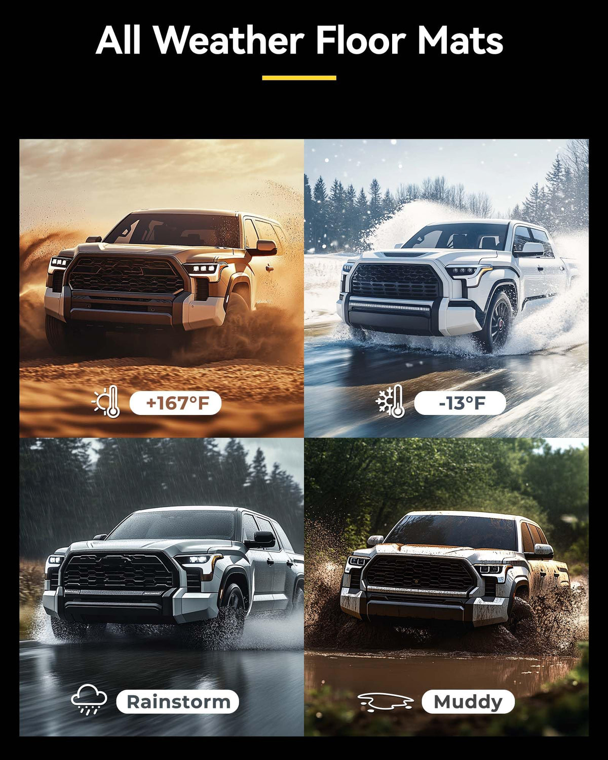 3W Floor Mats Fit 2022-2024 2025 Toyota Tundra (Only For Crewmax Cab), Custom Fit All-Weather Tpe Front & Rear Row Floor Liner B