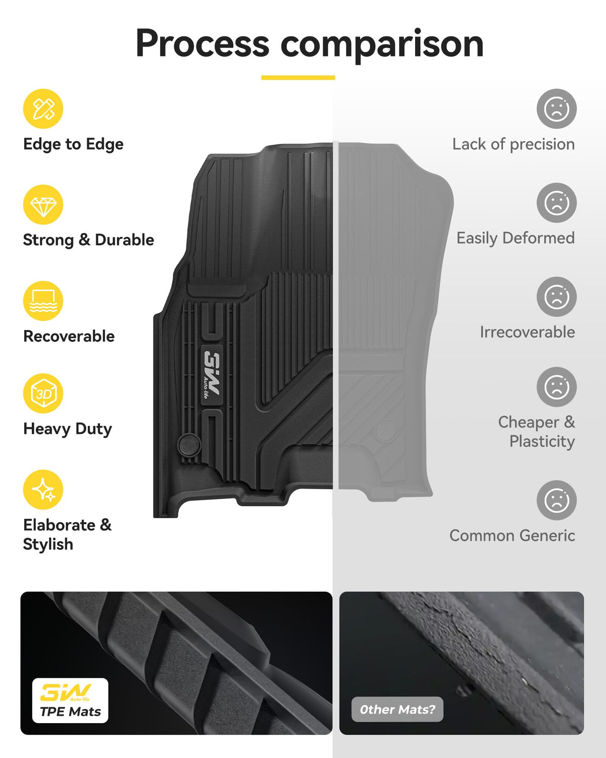 3W Auto Accessory Inc: 3W stands for Wonderful, Worldwide, Worthy. We are a company manufacturing floor liners/trunk mat with 25 years of history. We are one of the first companies in this filed to use TPE and injection molding to manufacture floor liners. The traditional floor liners are made by compression molding, which does not allow for many details, causing the floor liners/cargo liner to be rigid and stiff. 3W floor liners/cargo mat are designed with different patterns fitting the style of different models of cars. TPE material: 3W car mats are made from Thermoplastic Elastomers, which shows advantages of both rubbery materials and plastic materials thus having more strength, resilience, durability and elasticity. It has more outstanding thermal properties and material stability when exposed to an extreme temperature. 3W trunk mat has no odor even in extremely hot weather with all car windows closed, and can stay resilient in extremely cold weather. Some babys pacifiers are made from the same material. This design won the 2017 Red Dot award in Germany. Custom fit and easy to clean: Each 3W cargo liner is custom fit. We scan the interior of each car and computer design the pattern incorporating key elements of the vehicle, gives the trunk mat a customized look and feel, will match the interior of your car perfectly. The back of 260W floor liners are designed with air pockets to effectively absorb the noise from the chassis. In addition, every car liner has a raised containment walls protecting your vehicle from all kinds of mess. You can finish cleaning up the cargo liners within few minutes.