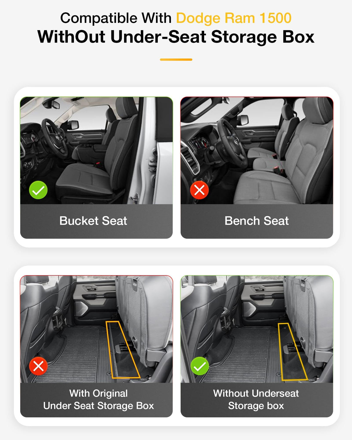 3W Floor Mats Fit For 2025 Dodge Ram 1500 (W/O Rear Under-Seat Factory Storage Bucket Seat), Tpe All Weather Custom Fit Floor Li