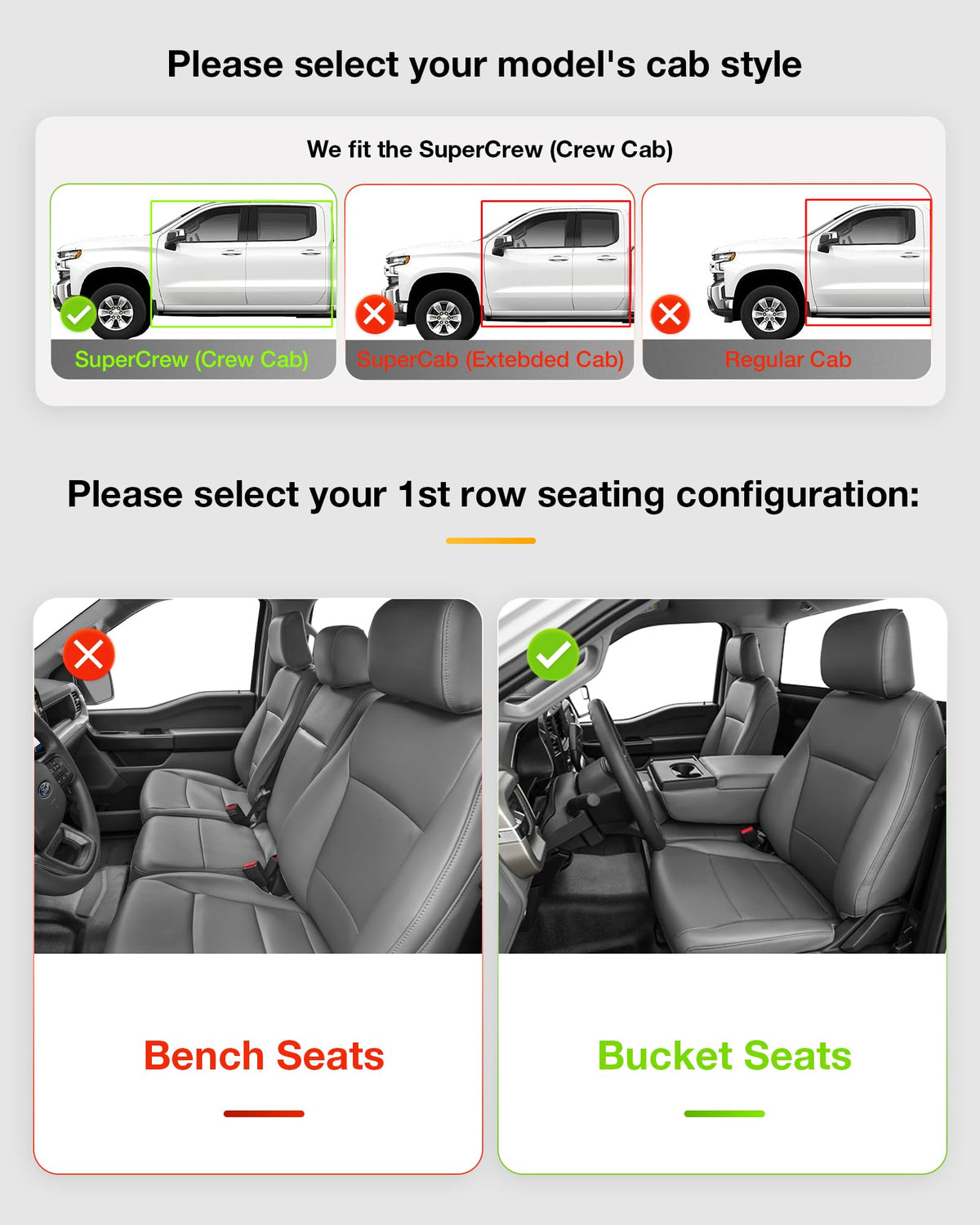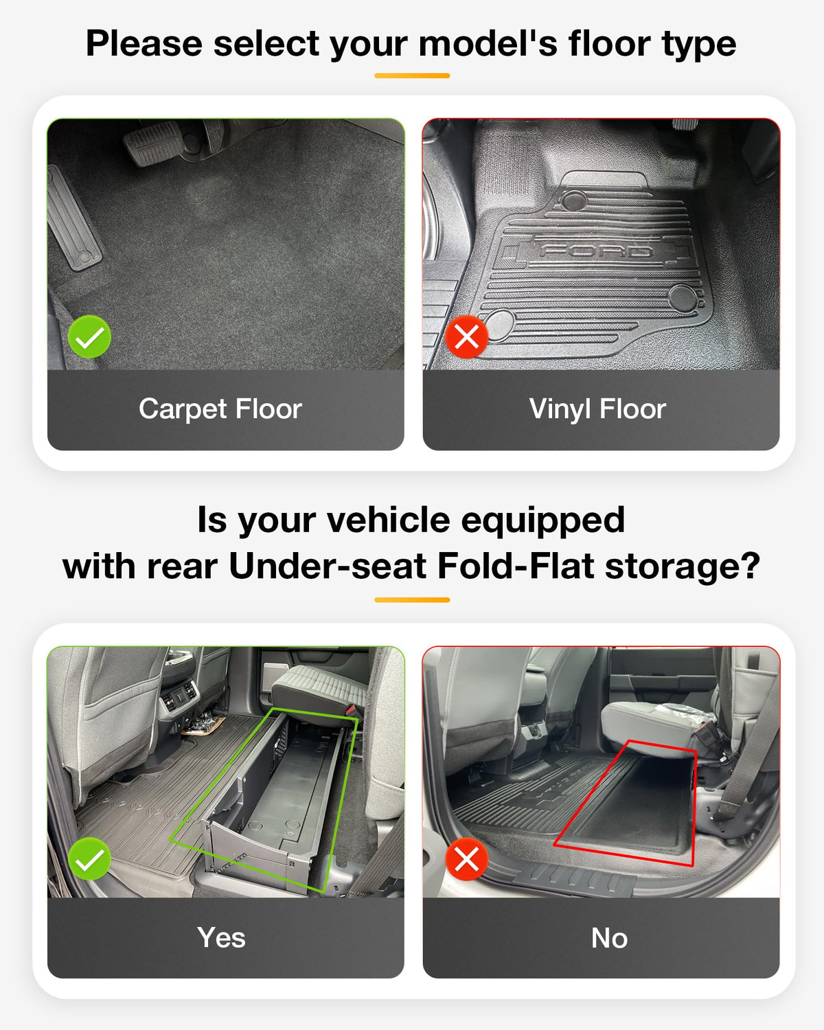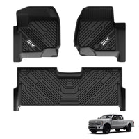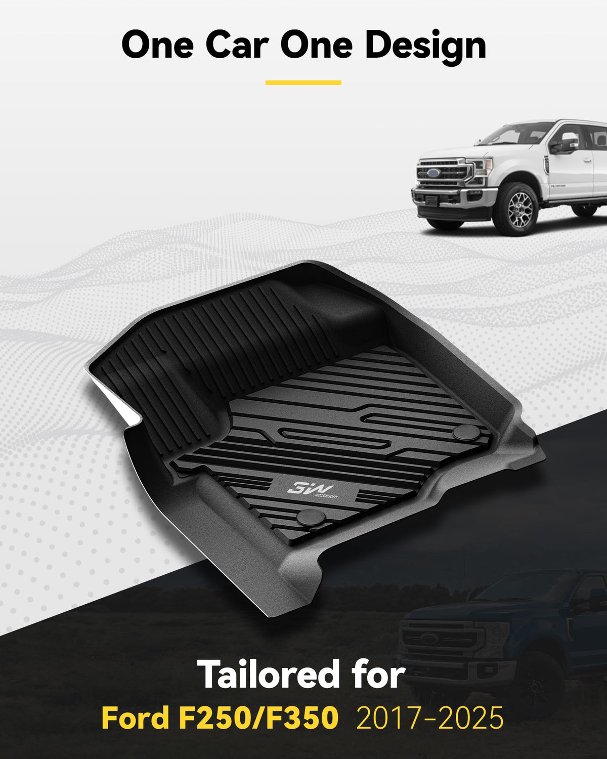 3W Floor Mats Fit For Ford F250 F350 F450 F550 2017-2024 2025 Super Duty Crew Cab Bucket Seat With Under Seat Storage, All Weath