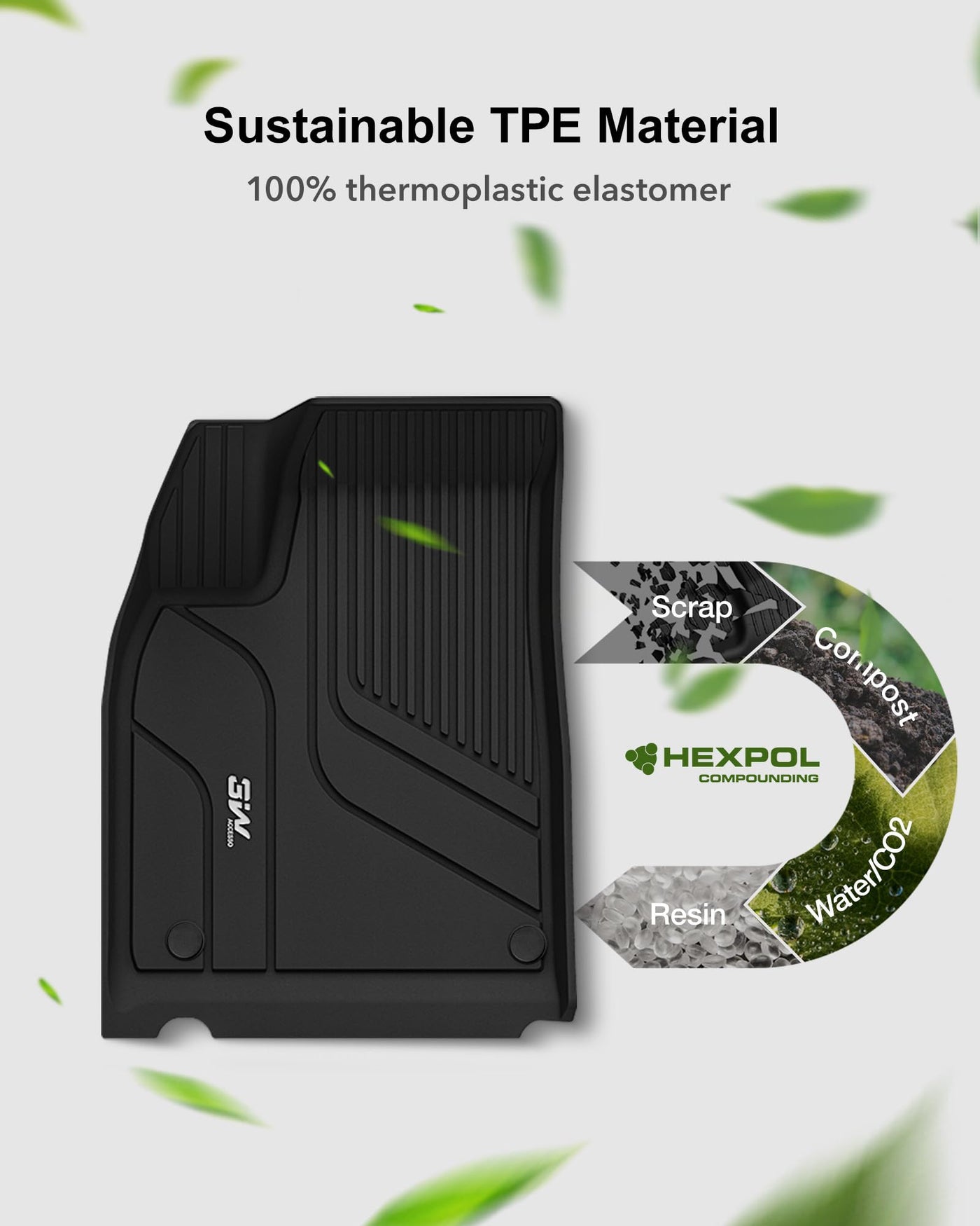 3W Floor Mats Fit For Tesla Model X 6 Seat 2022-2025 All Weather Tpe Custom Fit Floor Liners For 1-3 Rows Full Set Car Mats Blac