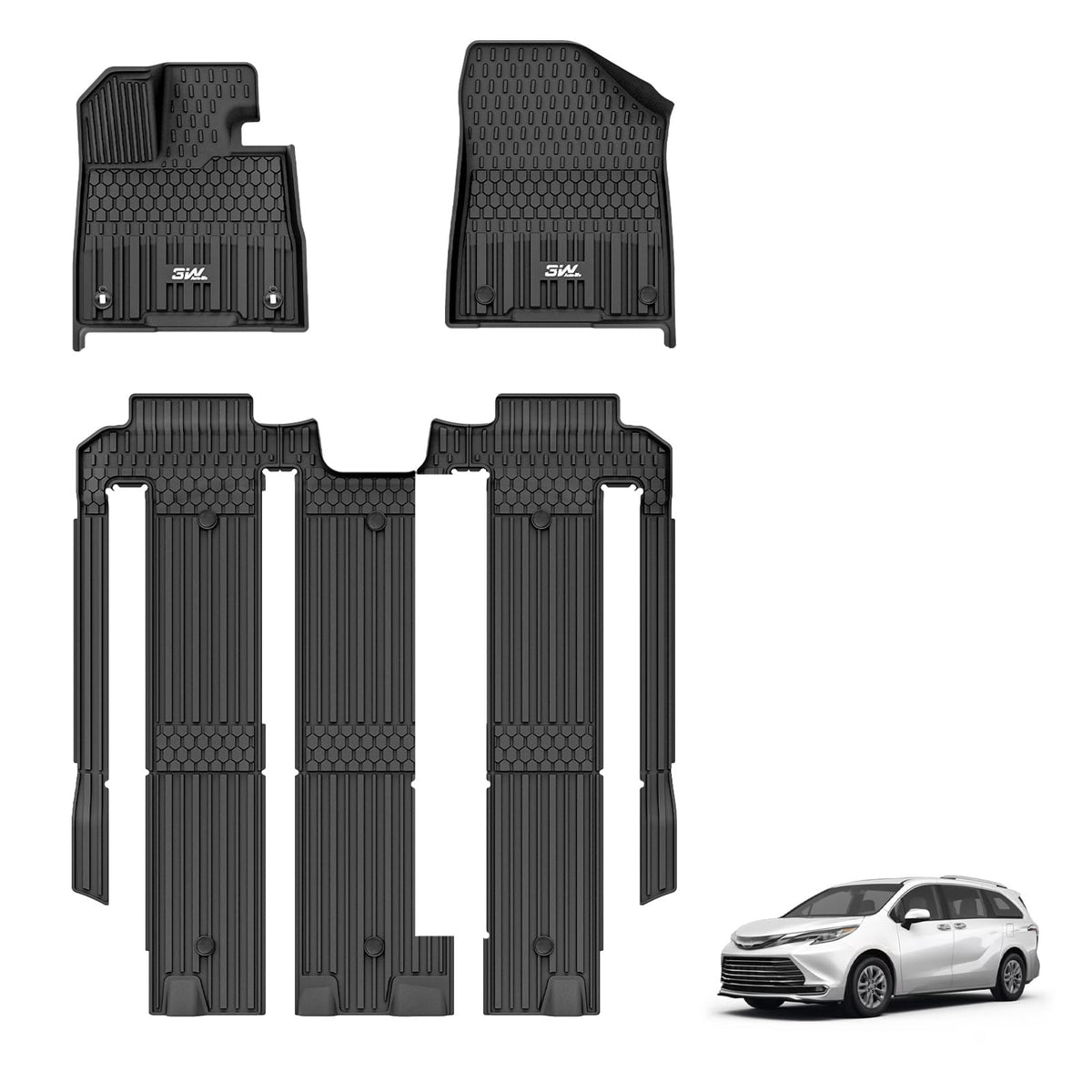 3W Floor Mats Fit Toyota Sienna 2021-2025 (Only For 7 Seat & Not Fit 2025 Platinum Edition), Tpe All Weather Custom Fit Floor Li
