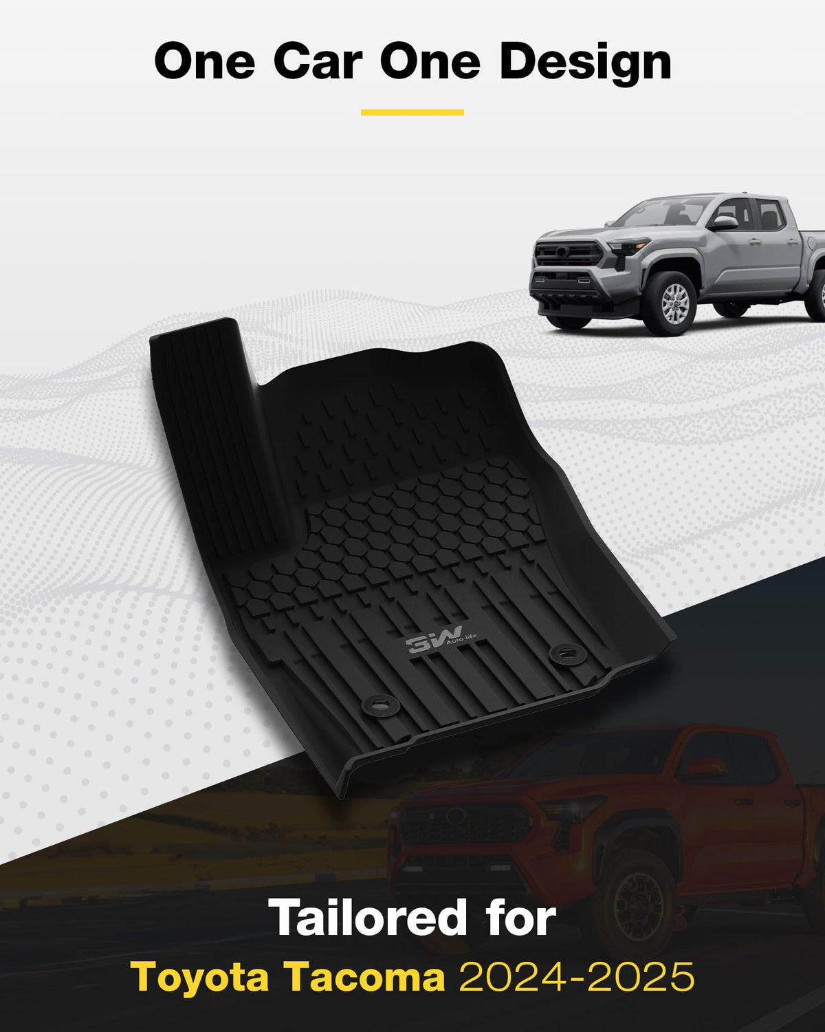 3W Floor Mats For Toyota Tacoma 2024 2025 Double Cab(Not Fit Hybrid), Tpe All Weather Custom Fit Floor Liner For Toyota Tacoma 1