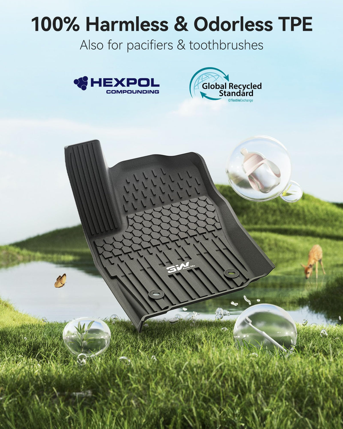 3W Auto Accessory Inc: 3W stands for Wonderful, Worldwide, Worthy. We are a company manufacturing floor liners/trunk mat with 25 years of history. We are one of the first companies in this filed to use TPE and injection molding to manufacture floor liners. The traditional floor liners are made by compression molding, which does not allow for many details, causing the floor liners/cargo liner to be rigid and stiff. 3W floor liners/cargo mat are designed with different patterns fitting the style of different models of cars. TPE material: 3W car mats are made from Thermoplastic Elastomers, which shows advantages of both rubbery materials and plastic materials thus having more strength, resilience, durability and elasticity. It has more outstanding thermal properties and material stability when exposed to an extreme temperature. 3W trunk mat has no odor even in extremely hot weather with all car windows closed, and can stay resilient in extremely cold weather. Some babys pacifiers are made from the same material. This design won the 2017 Red Dot award in Germany. Custom fit and easy to clean: Each 3W cargo liner is custom fit. We scan the interior of each car and computer design the pattern incorporating key elements of the vehicle, gives the trunk mat a customized look and feel, will match the interior of your car perfectly. The back of 280W floor liners are designed with air pockets to effectively absorb the noise from the chassis. In addition, every car liner has a raised containment walls protecting your vehicle from all kinds of mess. You can finish cleaning up the cargo liners within few minutes.