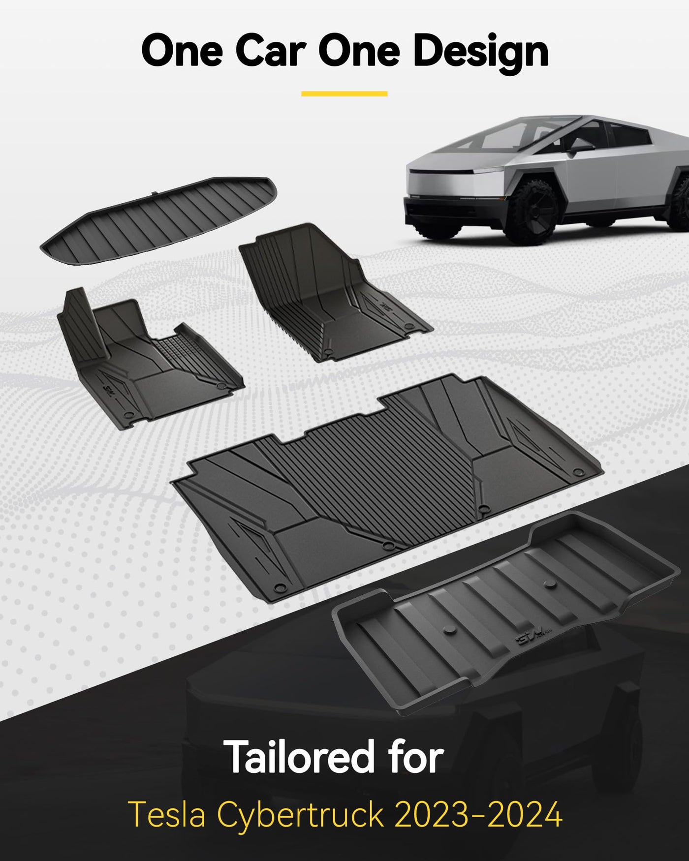 3W Floor Mats Set For Tesla Cybertruck 2023 2024 2025, All Weather Protection Waterproof Frunk & Rear Cargo Liners, Custom Tpe C