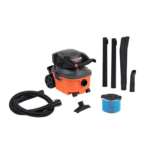 The new RIDGID 4-gal. Wet/Dry Vacuum is a multi-functional tool that combines portable power and a handheld blower. This compact powerhouse packs a heavy-duty 6 peak horsepower rated motor to tackle even the messiest jobs. The power head of the vacuum detaches and quickly converts into a handheld blower with a locking wand that outperforms most dedicated leaf blowers. The quick-release cord wrap lets you spend less time unwrapping the 20 ft. cord and more time on the job. The caddy conveniently keeps your accessories and the hose close at hand. It is 2 incredible tools in one. Features Detachable hand-held blower with a locking wand with blowing capacity ideal for cleaning decks and driveways 6-peak horsepower motor for powerful performance for heavy-duty cleanup Lightweight and portable Large rear wheels and casters provide great mobility over carpeted floors, thresholds and rough terrain at job sites Accessory storage caddy keeps accessories organized and close by for easy access 7 ft. tug-a-long hose offers a secure fit to the vacuum and a clog-free performance 20 ft. cord provides extra reach Includes a utility nozzle, car nozzle, 2 extension wands, blowing wand and VF3500 fine dust filter Accepts RIDGID VF3501 dust bag Specifications Motor