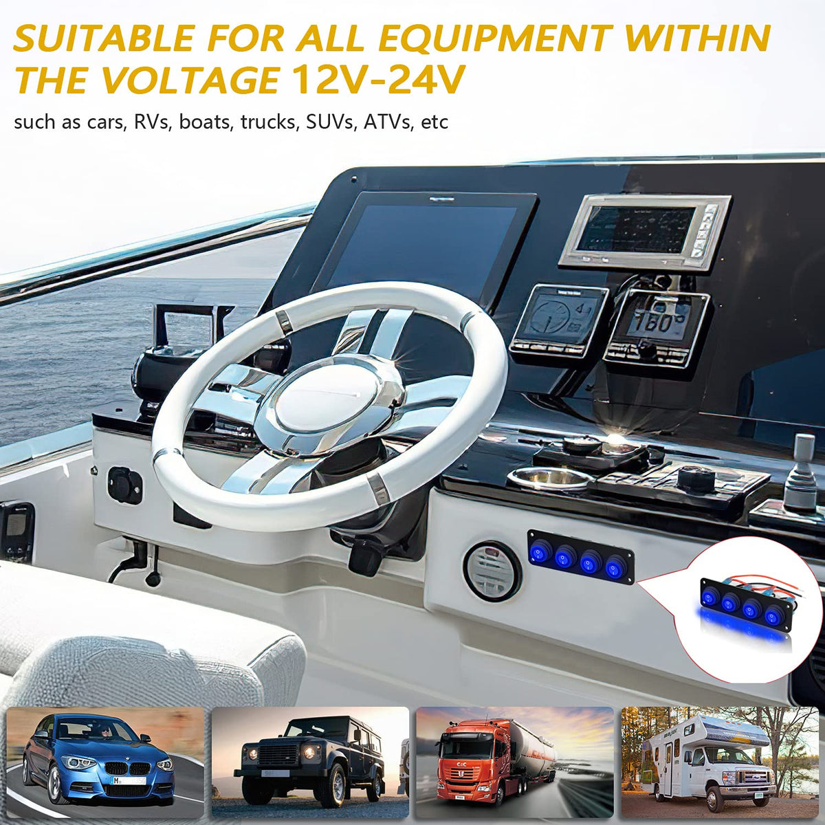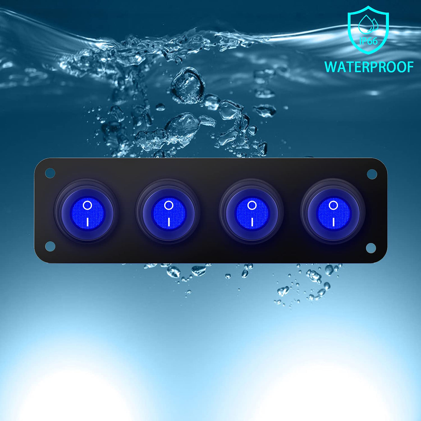 4 Gang 12V 20 Amp Toggle Rocker Switch Panel LED Breaker Waterproof Widely Fits for Auto Automotive Lights Car Marine Boat Yacht