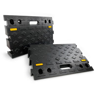 Q: How does the textured surface of the ramp enhance safety?A: The textured surface features a bar shape that increases friction, providing added security for vehicles and pedestrians while using the ramp.