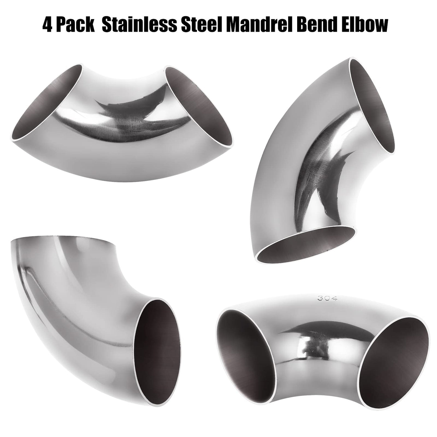 4 Pack 304 Stainless Steel Mandrel Bend Elbow, 90 Degree Exhaust Elbow Pipe, 2.5 Inch OD Mandrel Elbow, Thickness 16GA/.065'' fo
