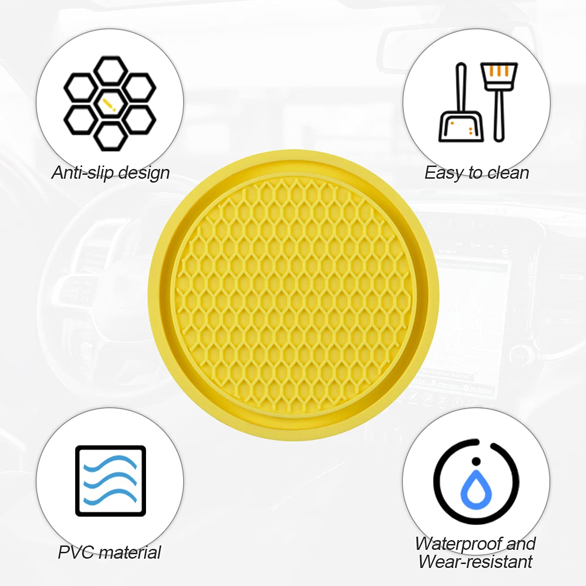 Q: Are these car cup holder coasters suitable for both men and women?A: Absolutely! The yellow color and functional design make these coasters a stylish and practical accessory for any car, appealing to both men and women.