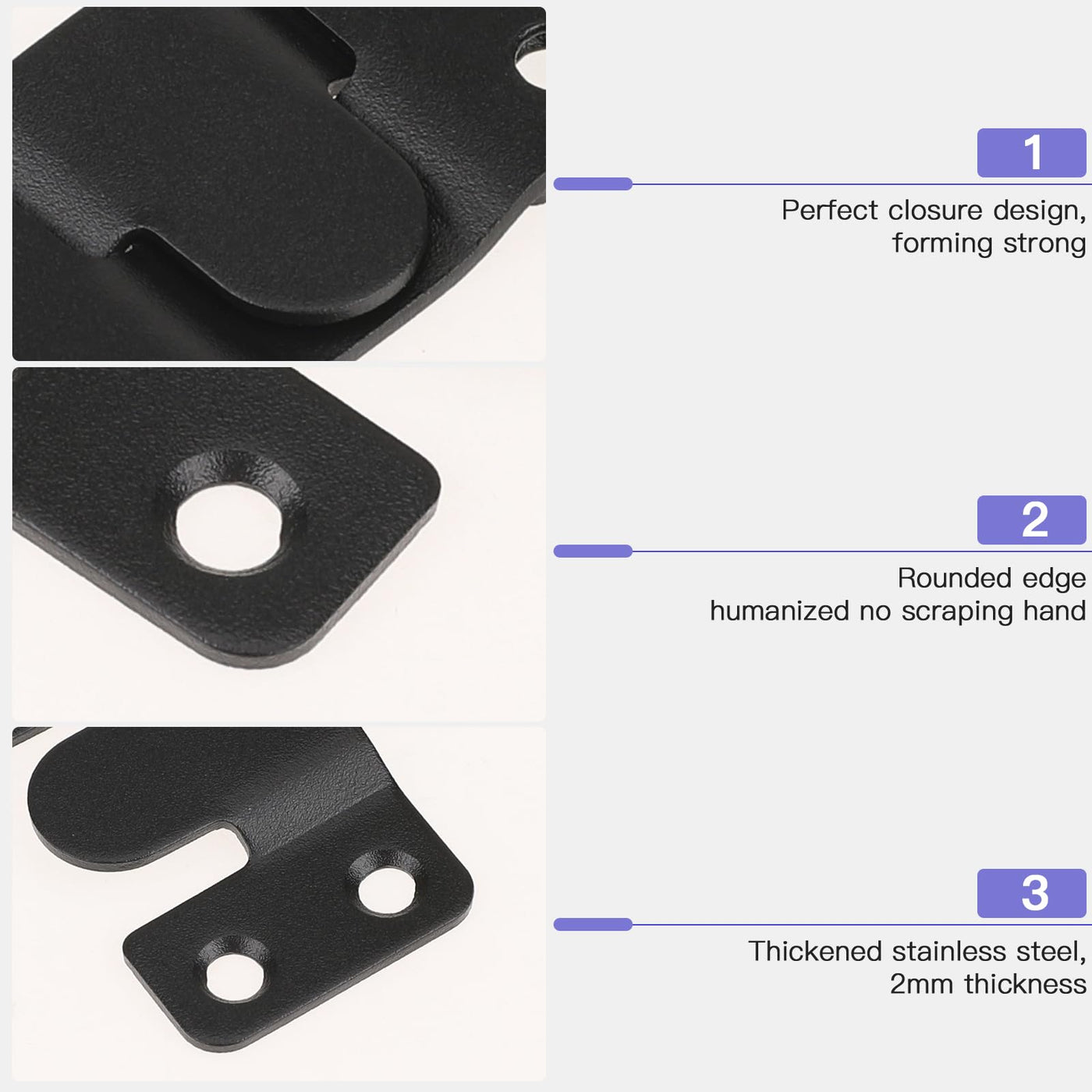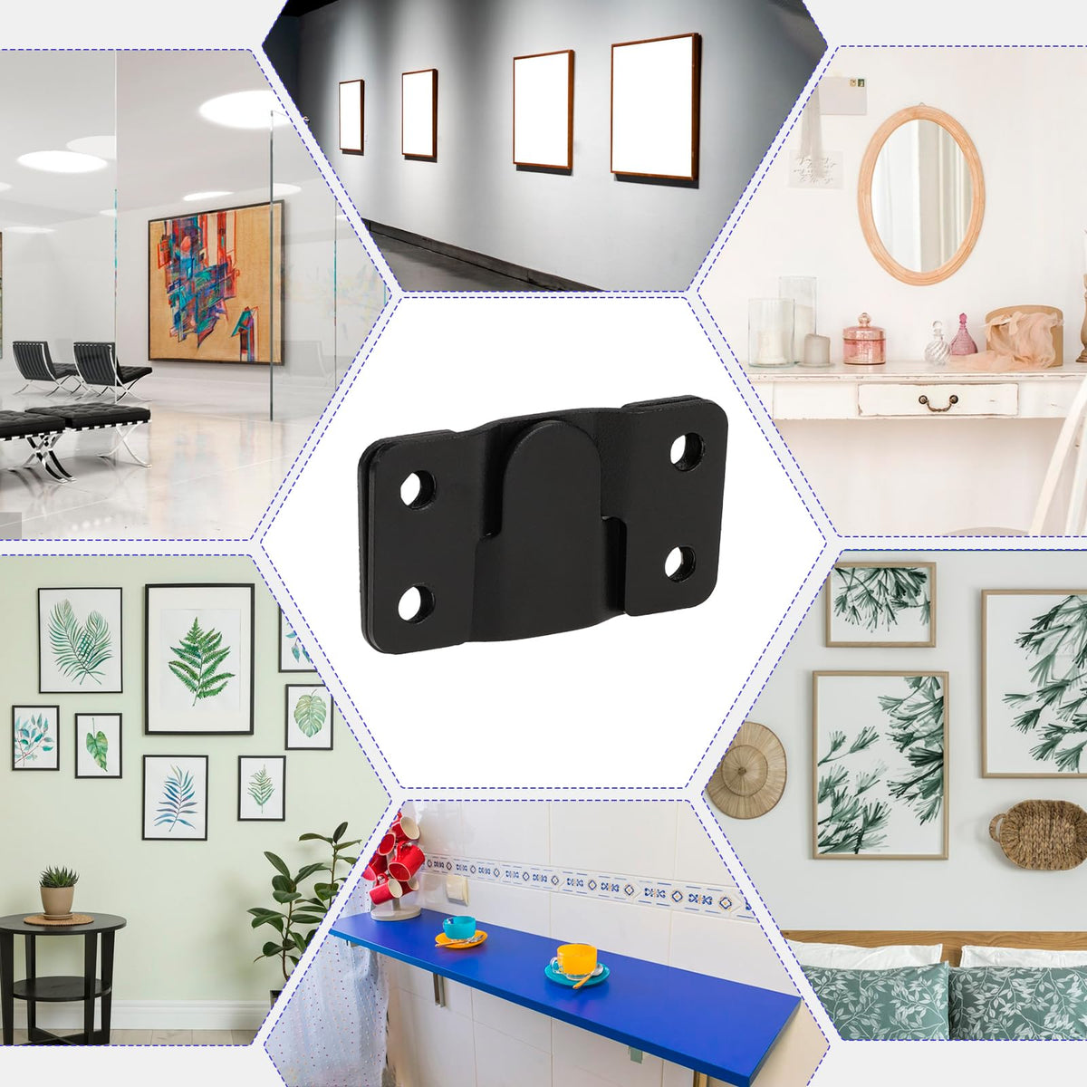 4 Pairs Interlocking Flush Mount Bracket Picture Hanging Hooks Black Stainless Steel Heavy Duty Photo Frame Hook Large Picture Hanger Buckle Furniture Connector Headboard Wall Mounting Hardware