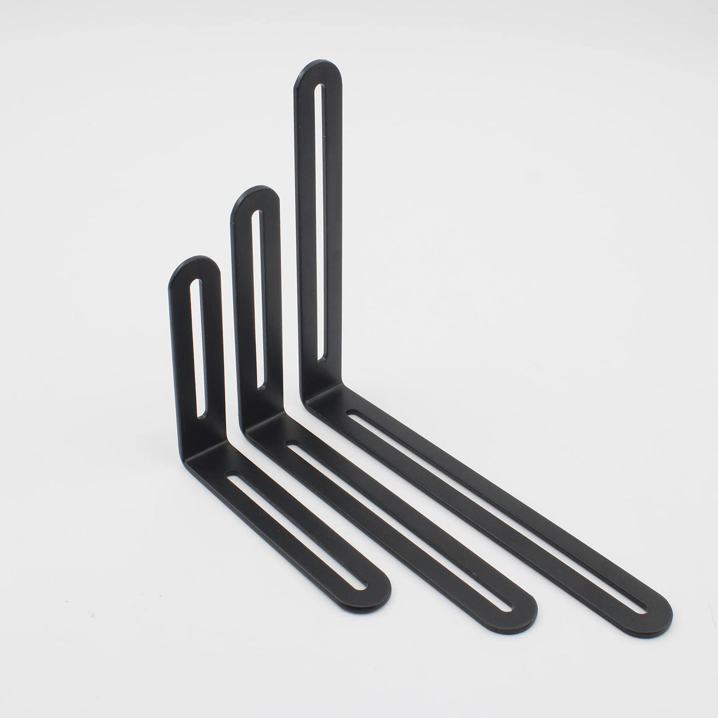 Specifications: Style: L-Shape Corner Brace Material: Stainless Steel, Heavy Duty and Strong Color: Black or Silver Size: Please see the second picture Thickness: 3MM/0.11” NOTE: Screws are not include