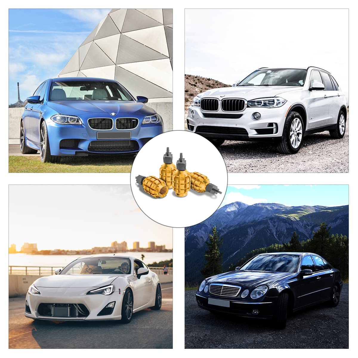 4 Pcs Car Tire Valve Stem Cap/Cover, Airtight Anti-Rust Valve Stem Caps Universal For Most Cars, Vehicles, Bicycles, Motorcycles And More, Cool Car Accessories For Men Women (Gold)