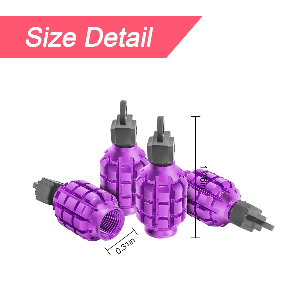 4 Pcs Car Tire Valve Stem Cap/Cover, Airtight Anti-Rust Valve Stem Caps Universal For Most Cars, Vehicles, Bicycles, Motorcycles And More, Cool Car Accessories For Men Women (Purple)
