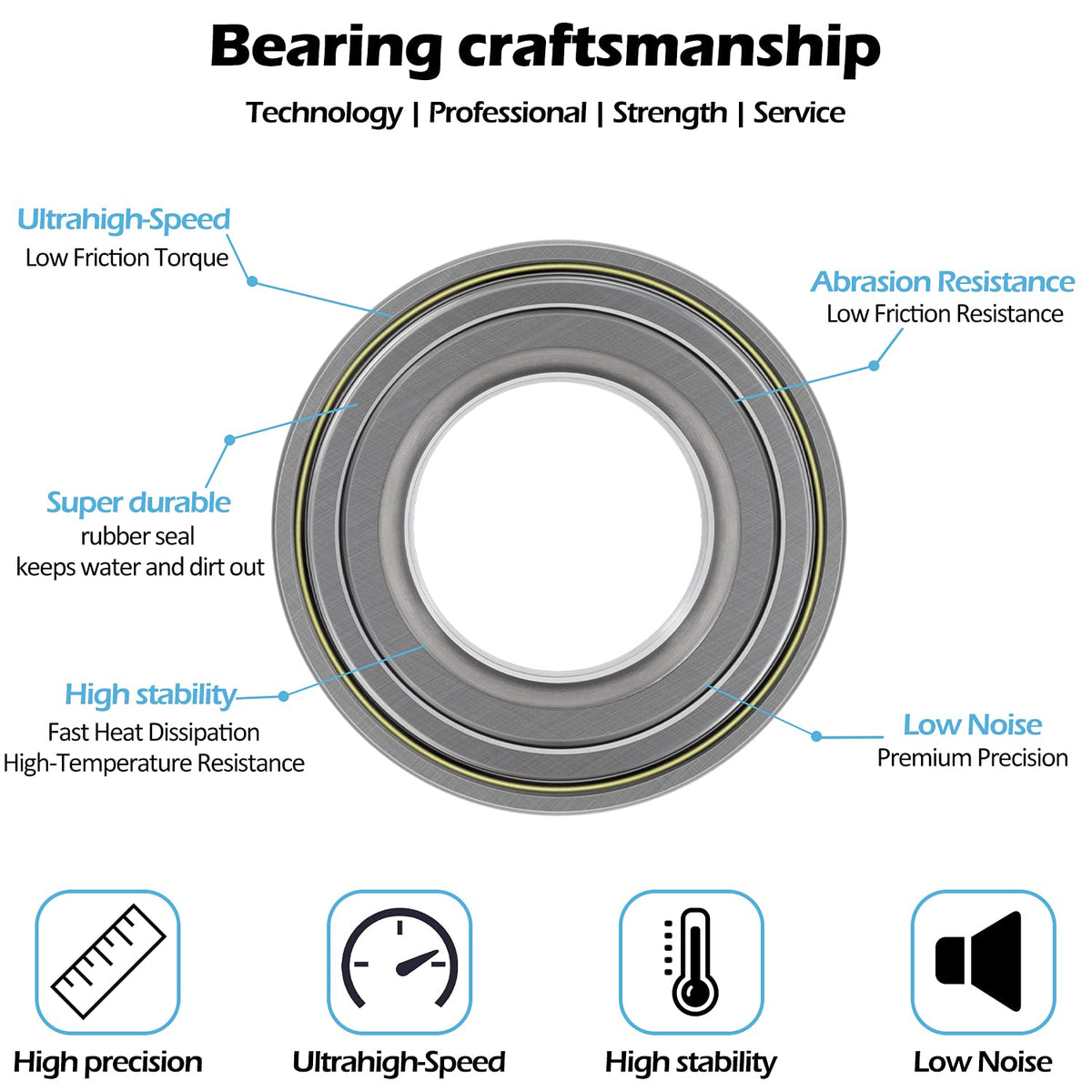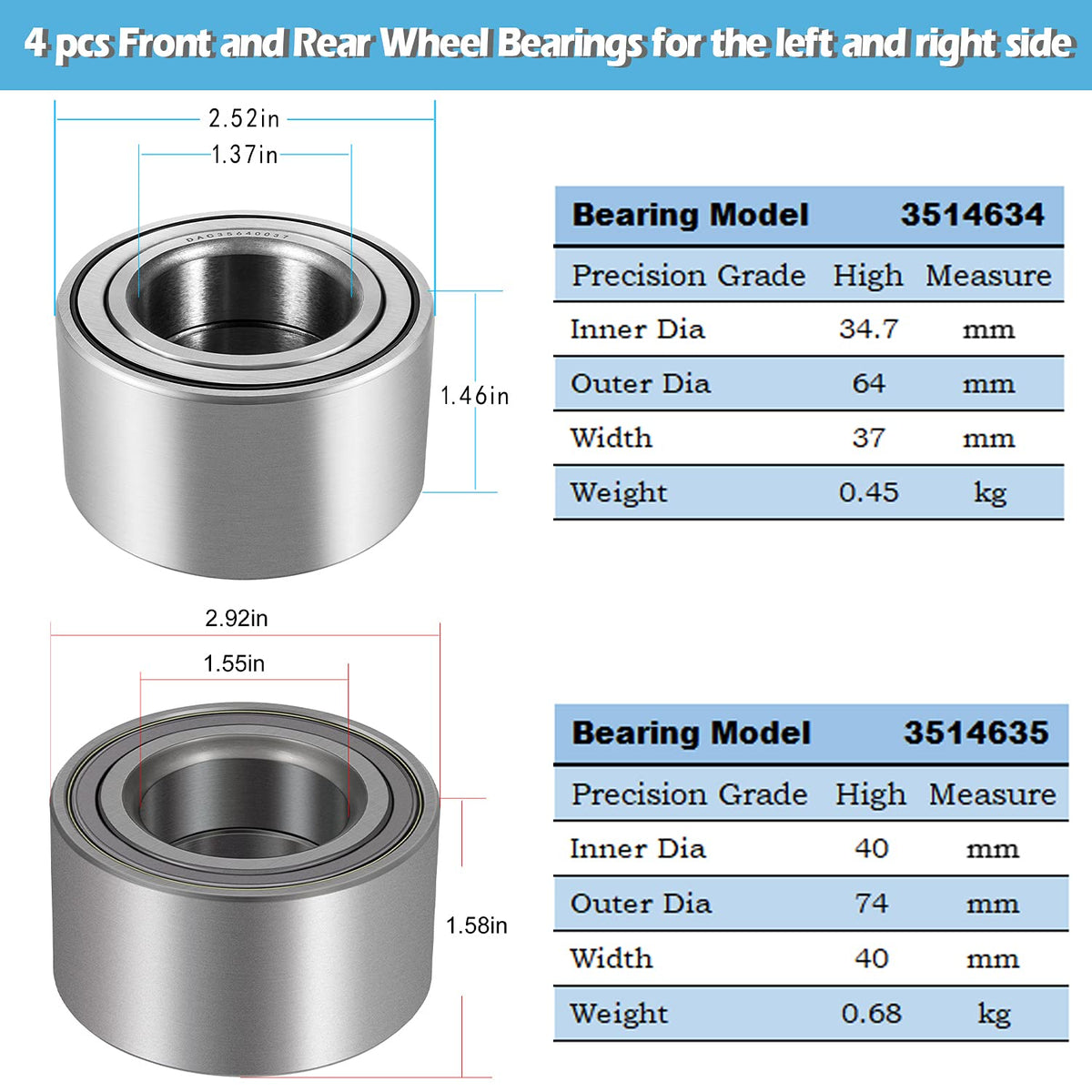 Q: Are these wheel bearings made from high-quality materials?A: Yes, these wheel bearings are made from premium steel and feature dual-sided rubber seals to prevent dust, mud, sand, and water from entering, ensuring durability and optimal performance.
