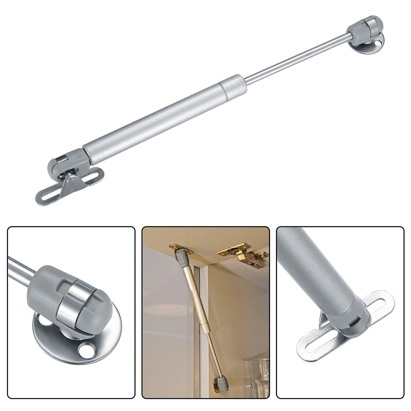 Features: - The gas struts for cabinets are made of thickened precision steel, with high pressure resistance, not easy to deform, durable for long time use.