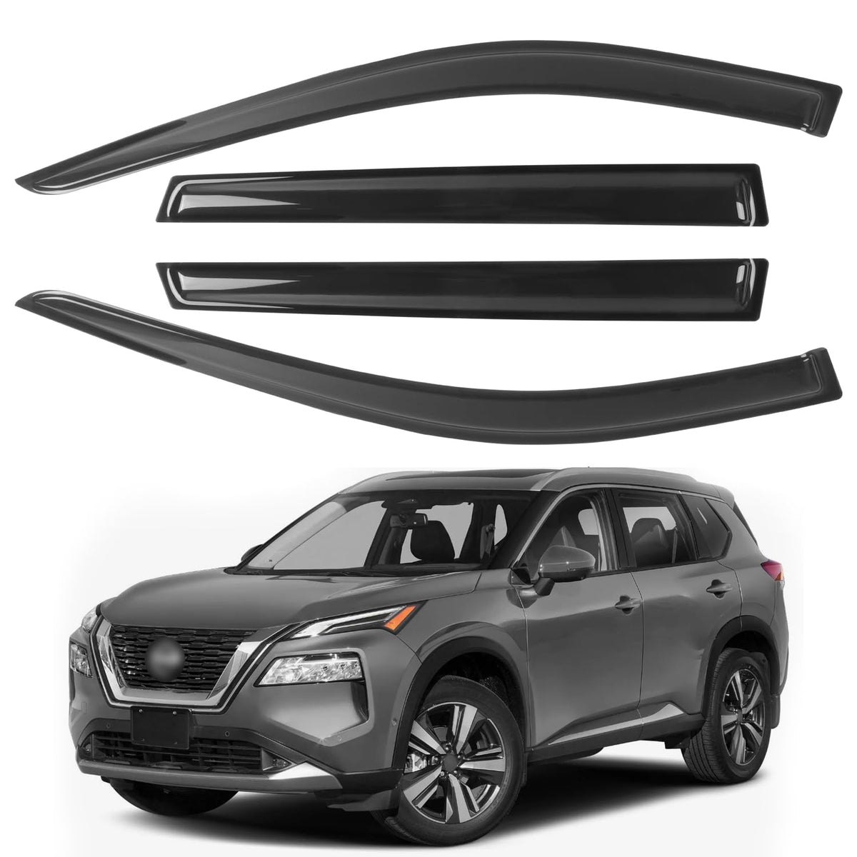 CHYKORLA Rain Guards Side Window Visor Deflectors Fit for Nissan Rogue 2021-2024, Tape-on Window Deflectors, 4pcs Smoke Tinted Vent Window Visors Outside Mount 2022 2023. CHYKORLA Window Wind Deflectors compatible with Nissan Rogue 2021-2024 S, SV, SL, Platinum 4-Door Sedan Models and it fits perfectly! GOOD LOOK - 3D wavy black design. DURABLE - Flexible & Shatterproof. MAKE DRIVING SAFE AND SAVING - To protect you against heat, wind, rain, snow and environmental damage when youre on the road. EASY TO INSTALL - it can be easily installed using a tape-on method. NICE CLEAN SLICK LOOK - it is not bad if you want to start making your car look better this is a headstart! We are very confident in the quality of our products, We believe that through our continuous efforts and improvements, we can win your trust and support.