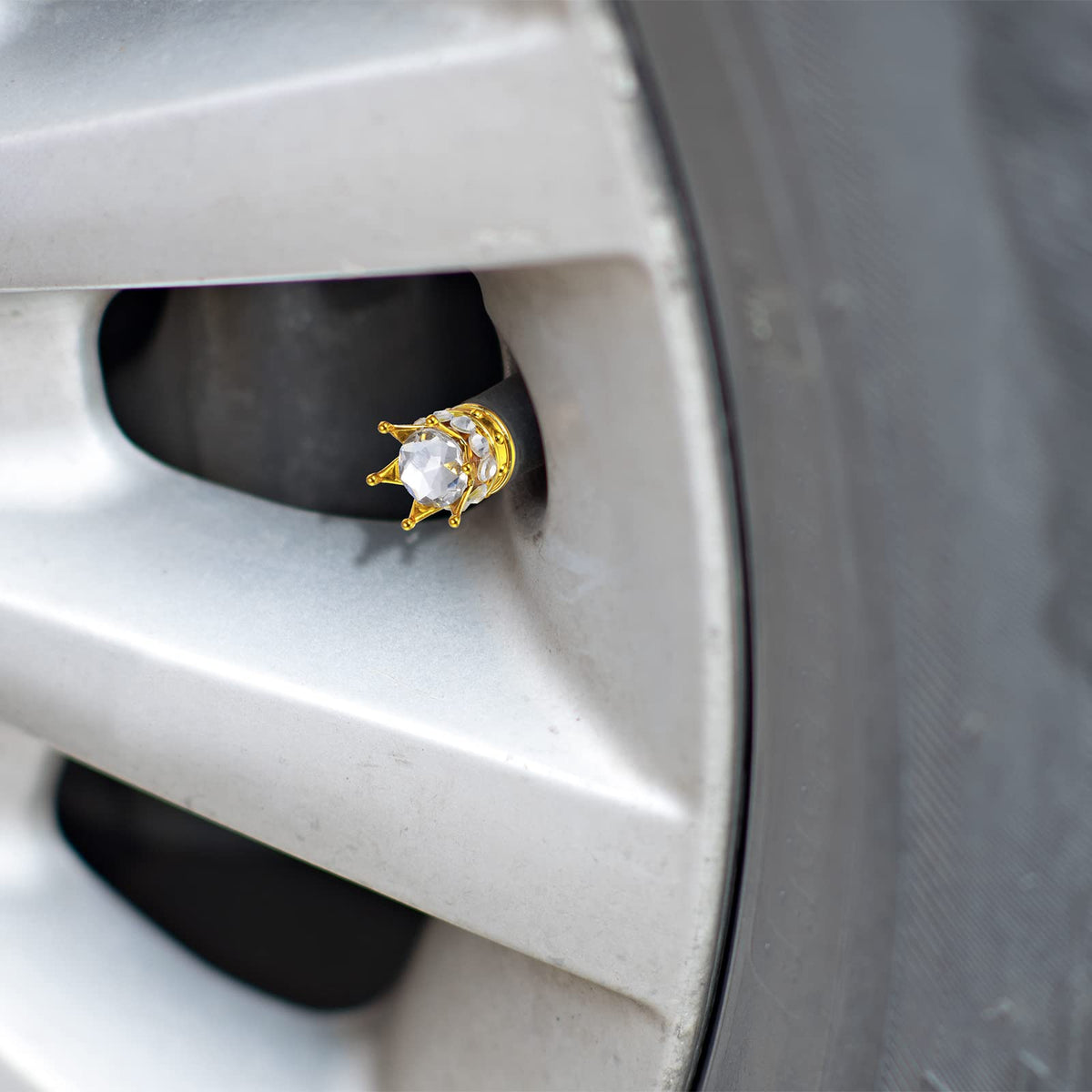 Q: Are the rhinestones on the valve caps durable, or will they fall off easily?A: The rhinestones are securely embedded in the valve caps, providing a bling effect that adds style to your car without compromising durability.